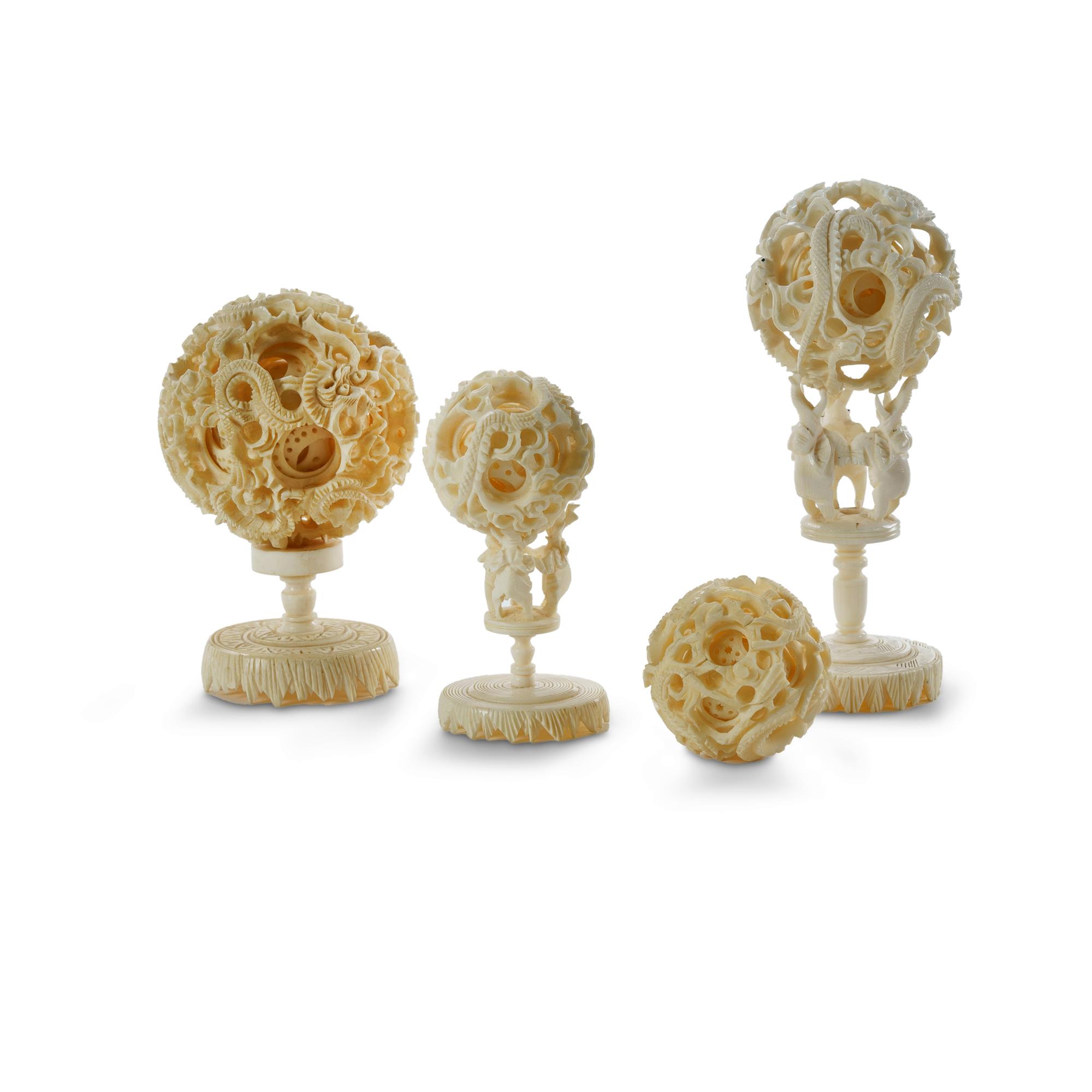 Group of 4 Early 20th C Chinese Puzzle Balls