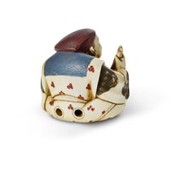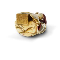 Taisho Period Japanese Ivory Netsuke Street vendor with hibachi. Two character signature. NB: ivory export restrictions (4x4cm)Estimate $250-450