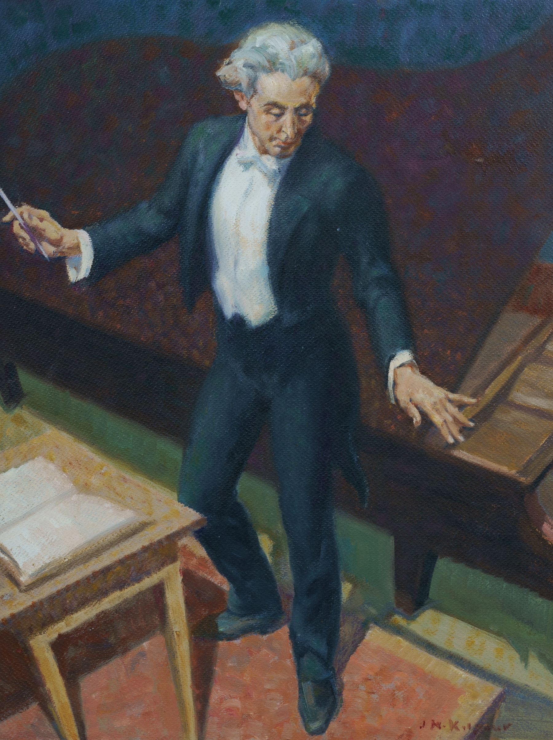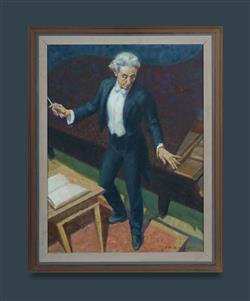 KILGOUR, Jack Noel (1900-1987) 'From the Gallery (The Conductor)' Signed lower right. Oil on Compressed Card 56x42cm