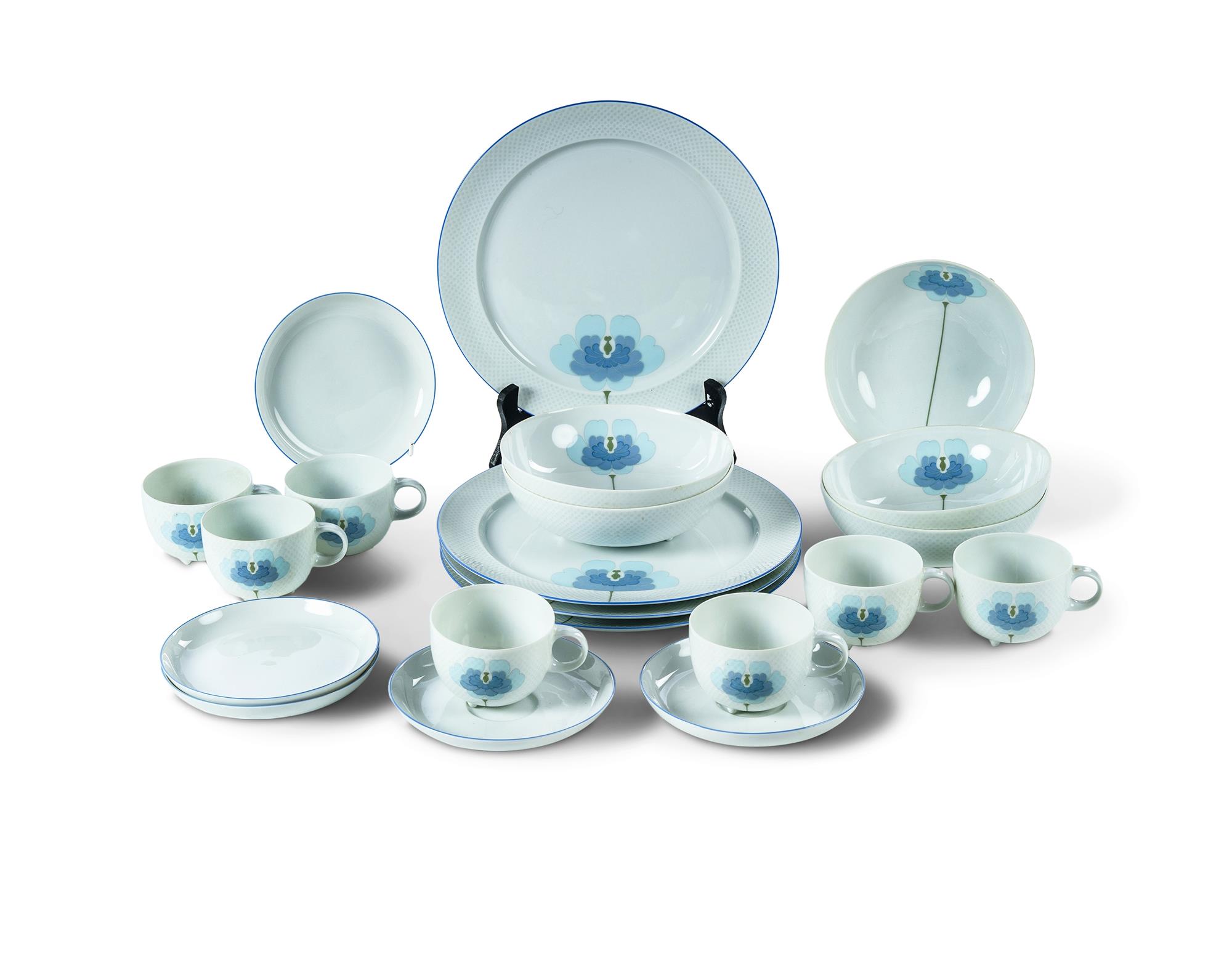 Rosenthal 'Blue Flowers' Porcelain Assorted pieces, including 4 dinner plates (Dia.26cm); 5 bowls; 7 cups; 2 saucers; and 3 under plates.Estimate $200-400