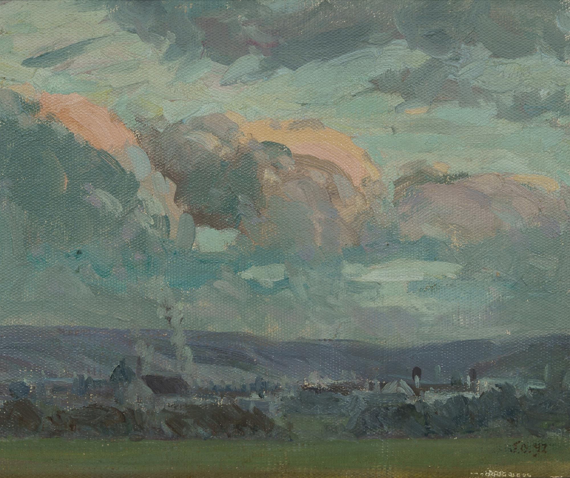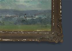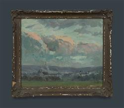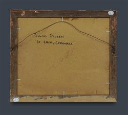 Attrib. OLSSON, Albert Julius (Julius) (British 1864-1942) Saint Erth, Cornwall, UK. Initialled J.O. lower right, and dated 92 (?) Attribution to Julius Olsson verso, in a later hand. Oil on Canvas 24x29.5cmEstimate $250-450