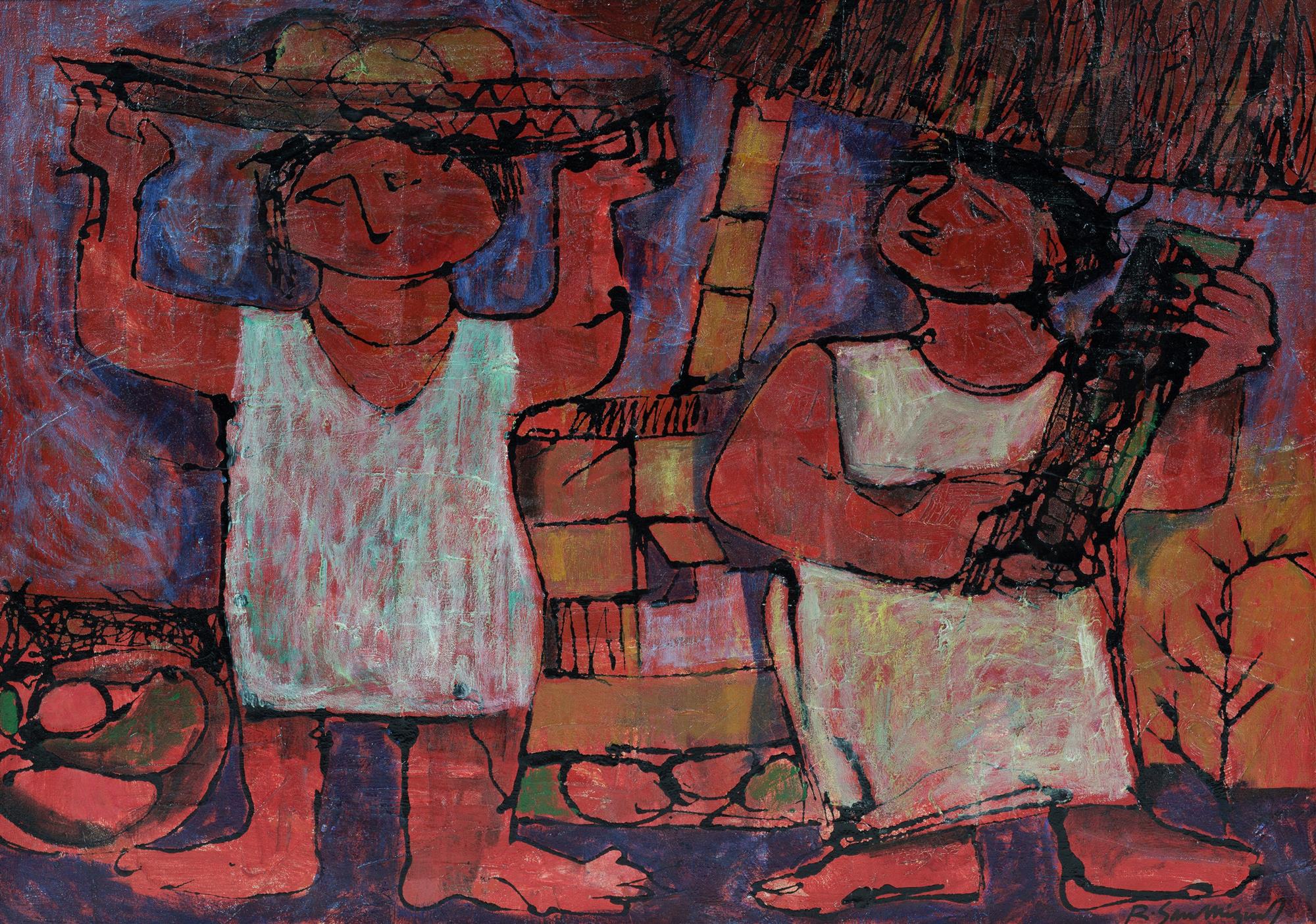 SAN MIGUEL, Roger (Philippines b.1940) 'Fond of Things' Signed lower right. Oil on Canvas 61x87cmEstimate $400-700