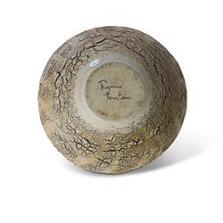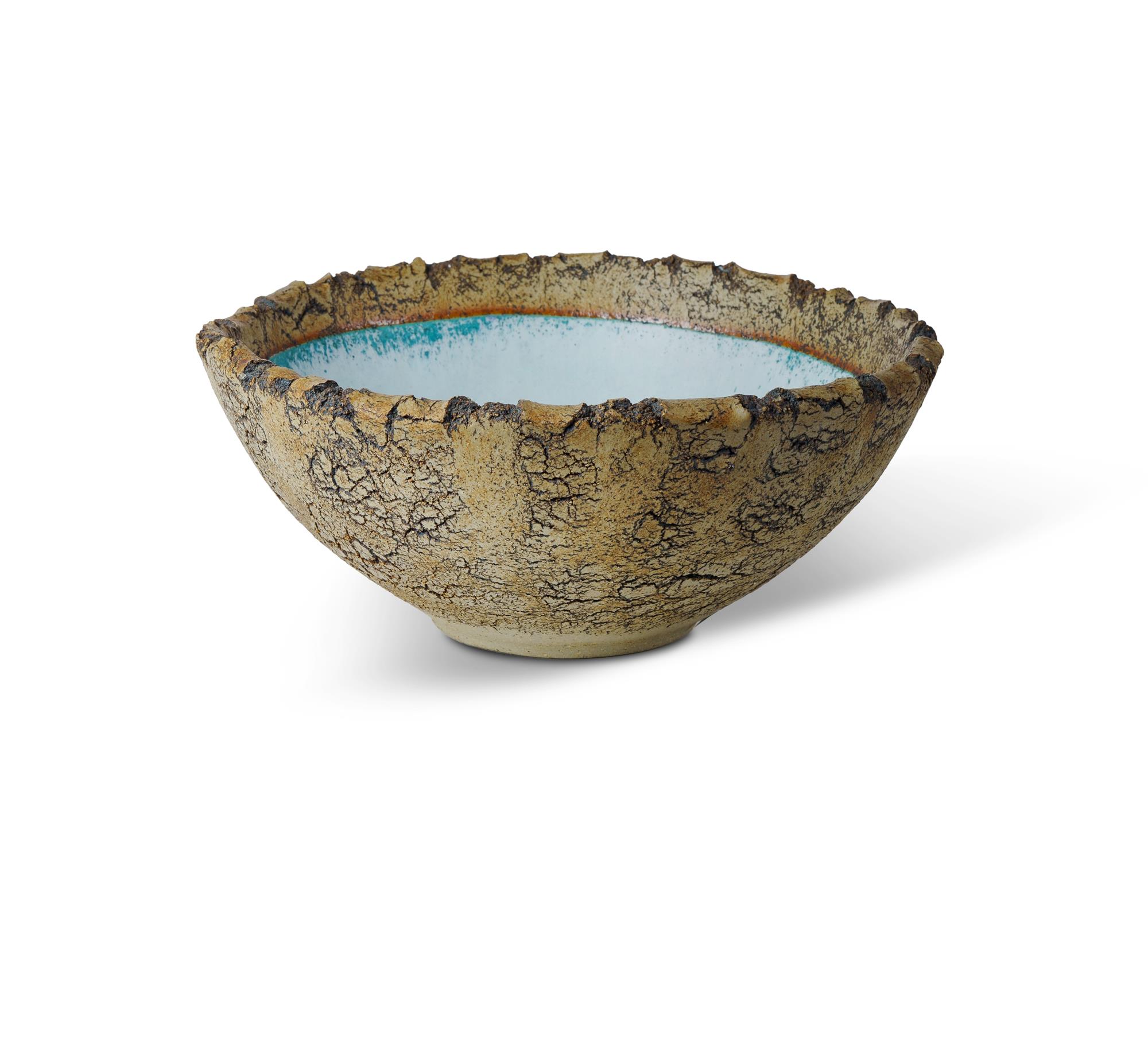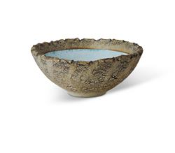 TANTON Rynne (b.1944) Rough Hewn Stoneware Bowl Parched crater form with manganese and cobalt glaze. Incised 'Rynne Tanton' Tasmanian Pottery. (Dia.26cm)Estimate $80-120