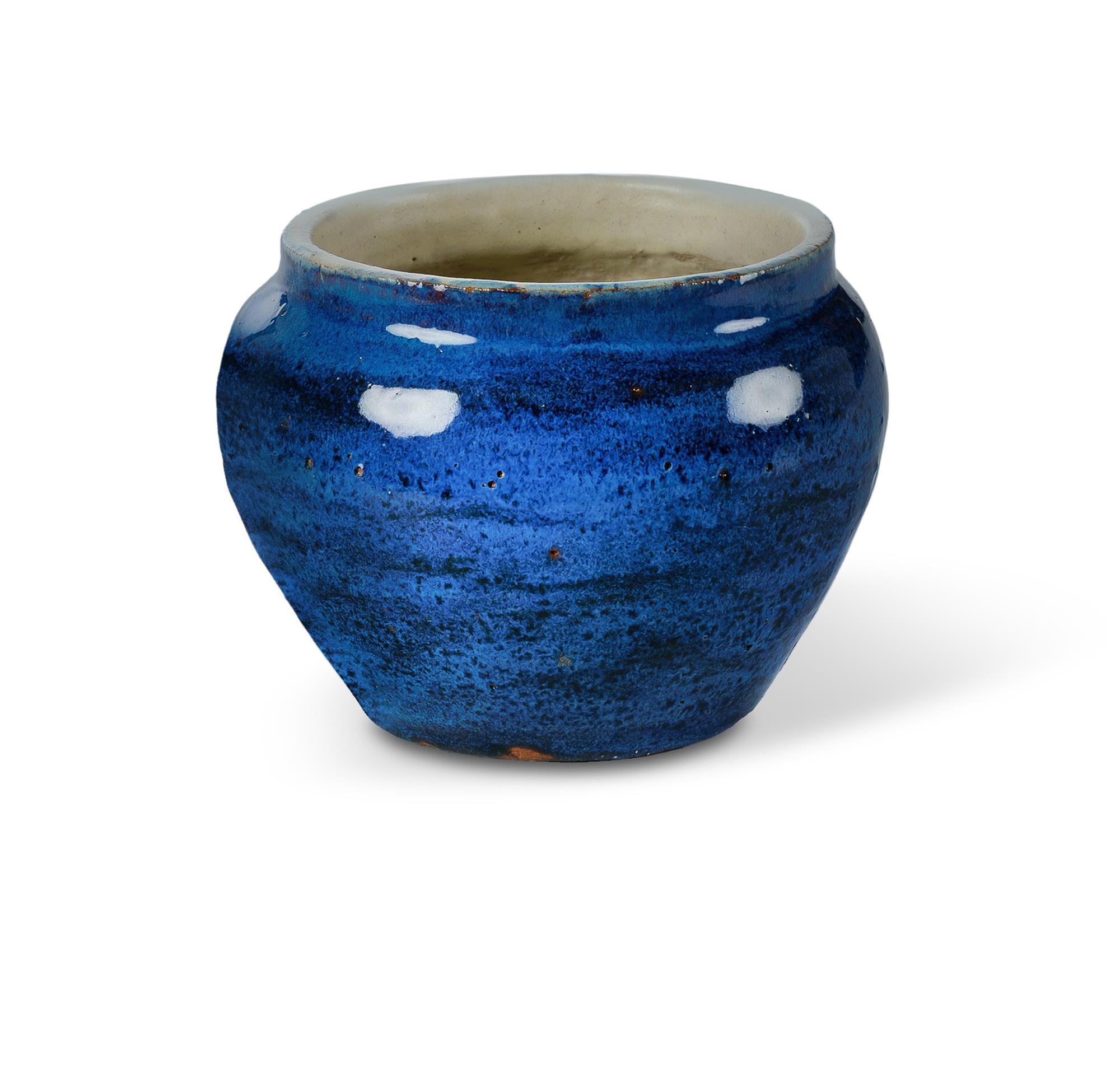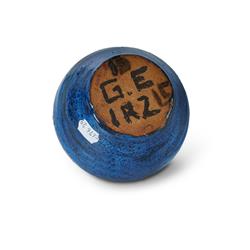 Early Red Stoneware Vase Cream interior and brushed cobalt glaze. Painted 'G.E. IRZ dated - 1915'. (H7cm)Estimate $60-100