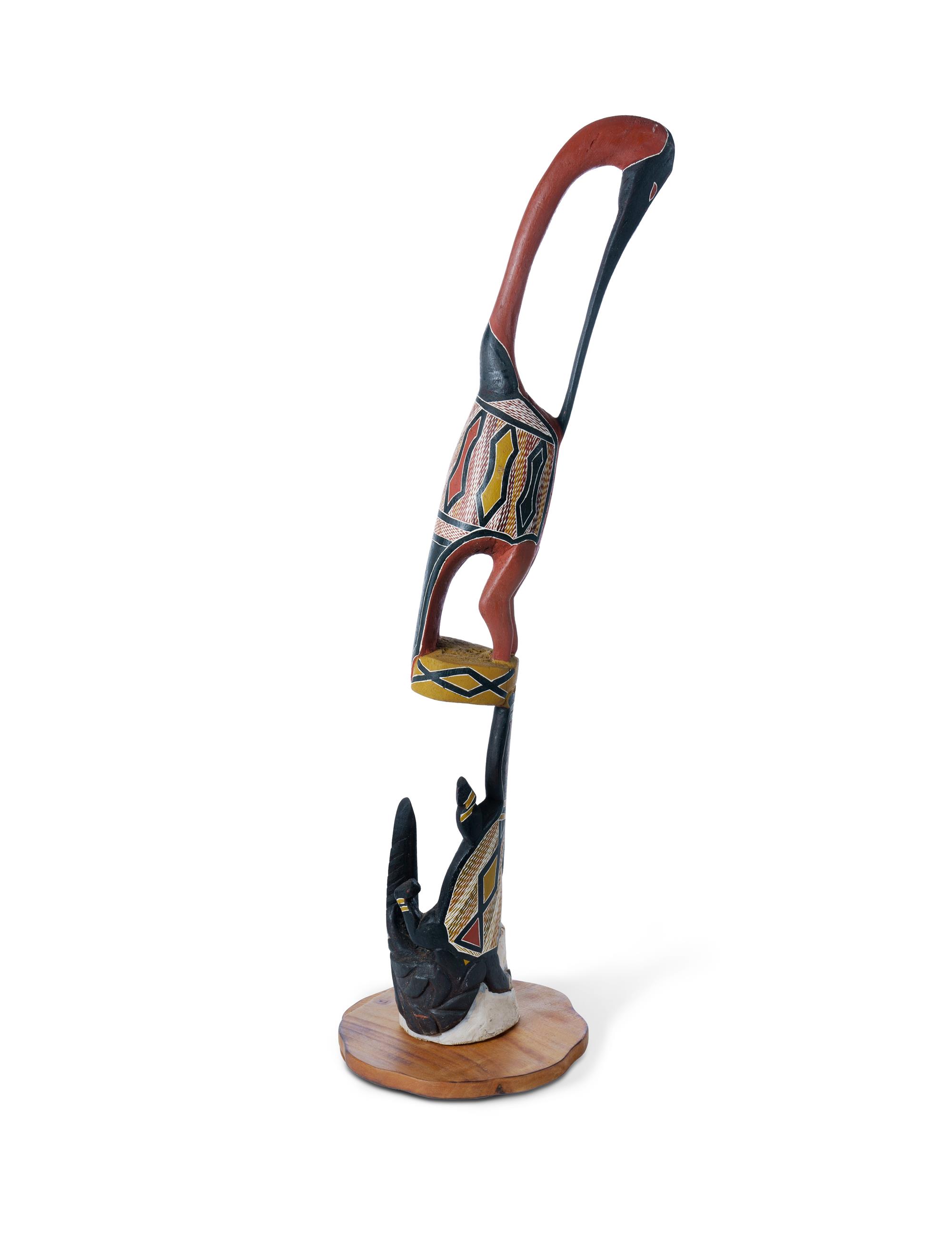MARAWILI, John David Napuwarri (Aboriginal b.1969) Brolga Signed to base. Acrylic on Wood H77cmEstimate $300-500