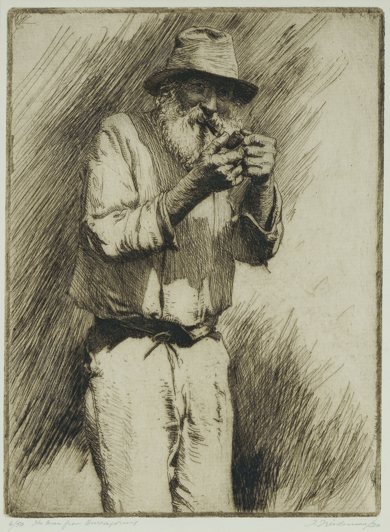 FRIEDENSEN, Thomas (1879-1931) 'The Man from Burragorang,' 1924. Etching 6/50 20x14.5cm (plate)Estimate $80-150