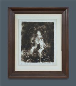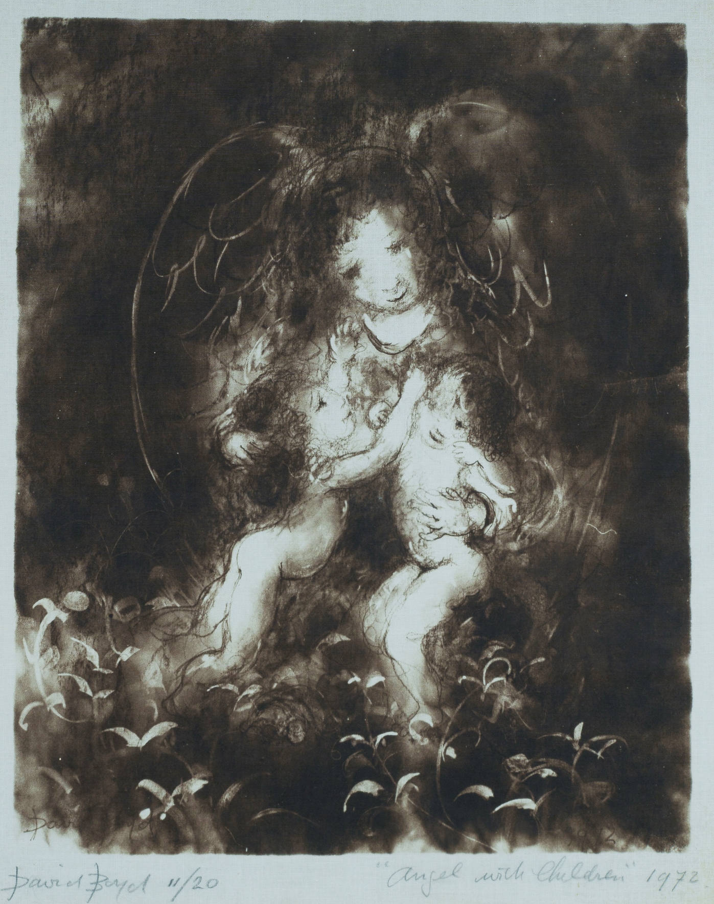 BOYD, David (1924-2011) 'Angel with Children,' 1972. Signed and inscribed in pencil. Monochrome Print on Fabric 11/20 36x29cm (image)Estimate $300-500