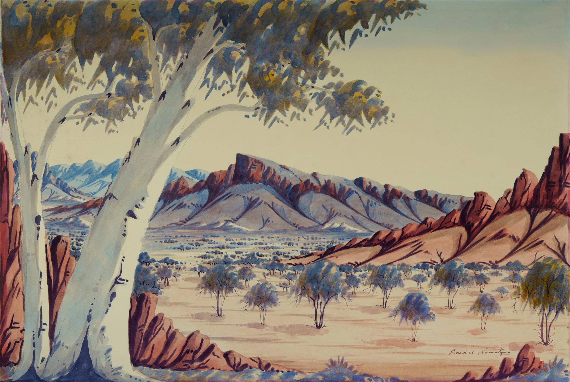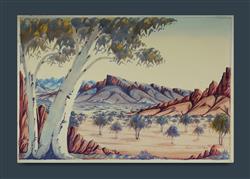 NAMATJIRA, Maurice (1938-1977) Central Australian Landscape with Ghost Gum W/Clr 35x52.5cm (image)Estimate $400-600