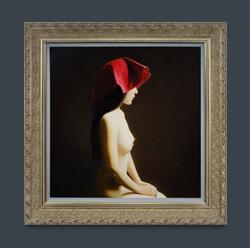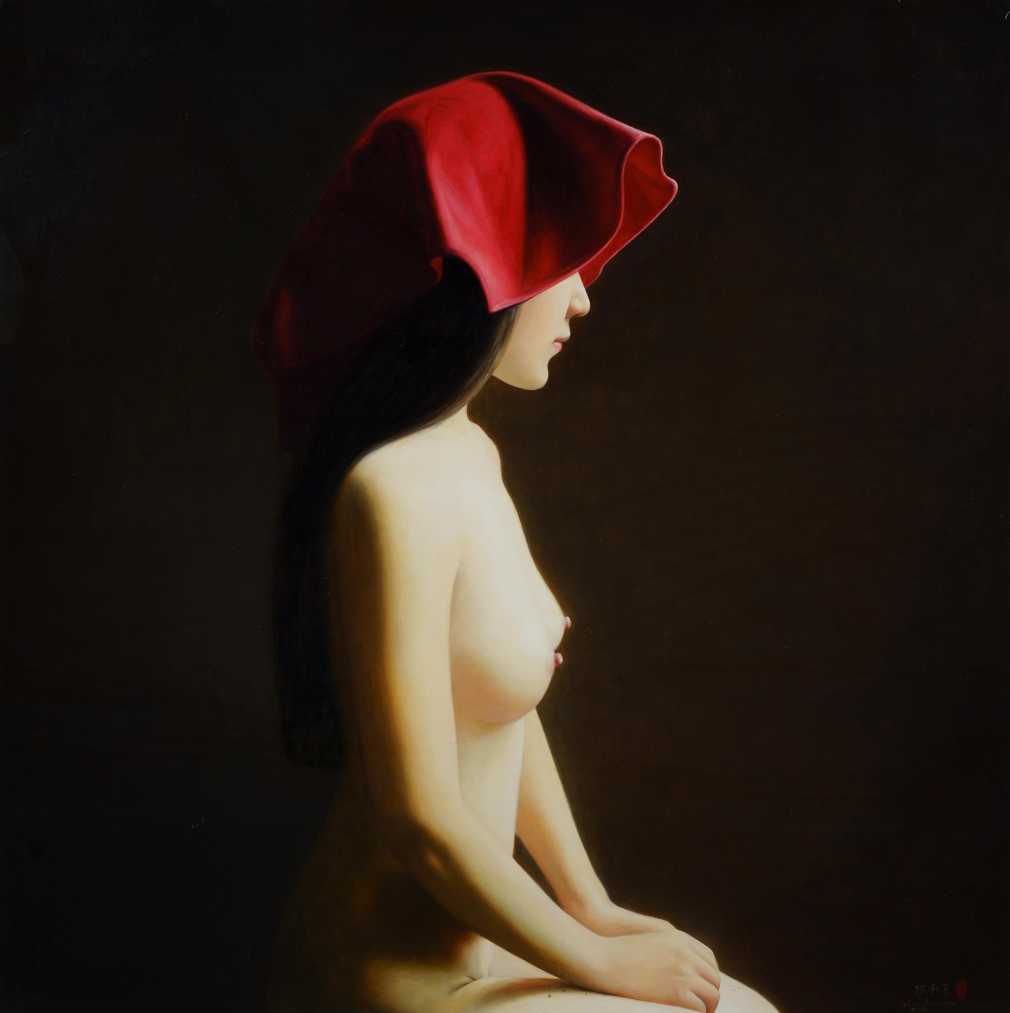 CHEN, Chengwei (Chinese b.1984) Nude in Profile, 2014. Signed and dated lower right including thumbprint. Oil on Canvas 99x99cm PROVENANCE: The artist; private collection, China and Sydney (purchased directly from the above); thence by descent (deceased estate)Estimate $4,000-6,000