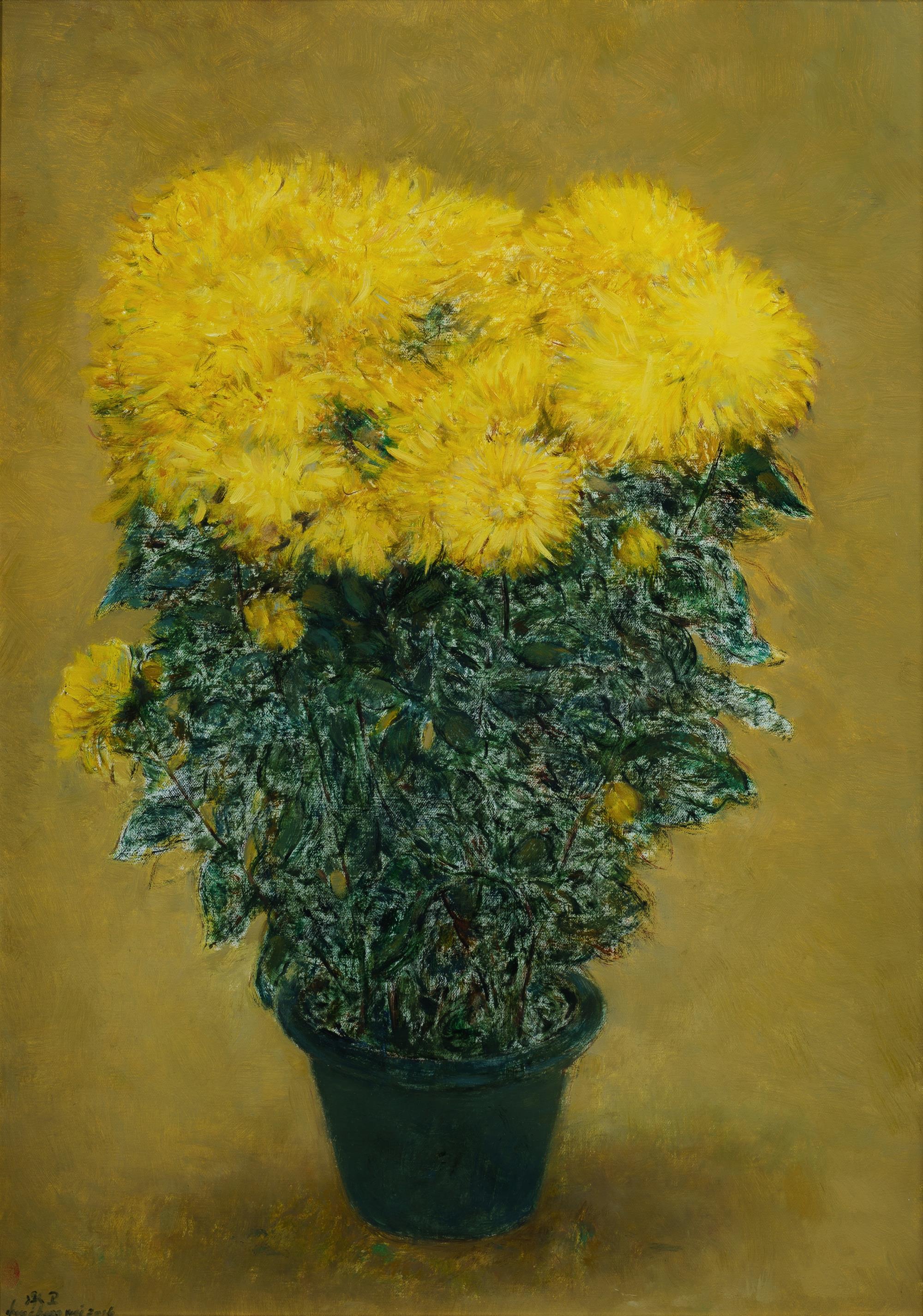 CHEN, Chengwei (Chinese b.1984) Yellow Flowers, 2016. Signed and dated lower left including thumbprint. Oil on Canvas 84x59.5cm PROVENANCE: The artist; private collection, China and Sydney (purchased directly from the above); thence by descent (deceased estate)Estimate $2,000-4,000