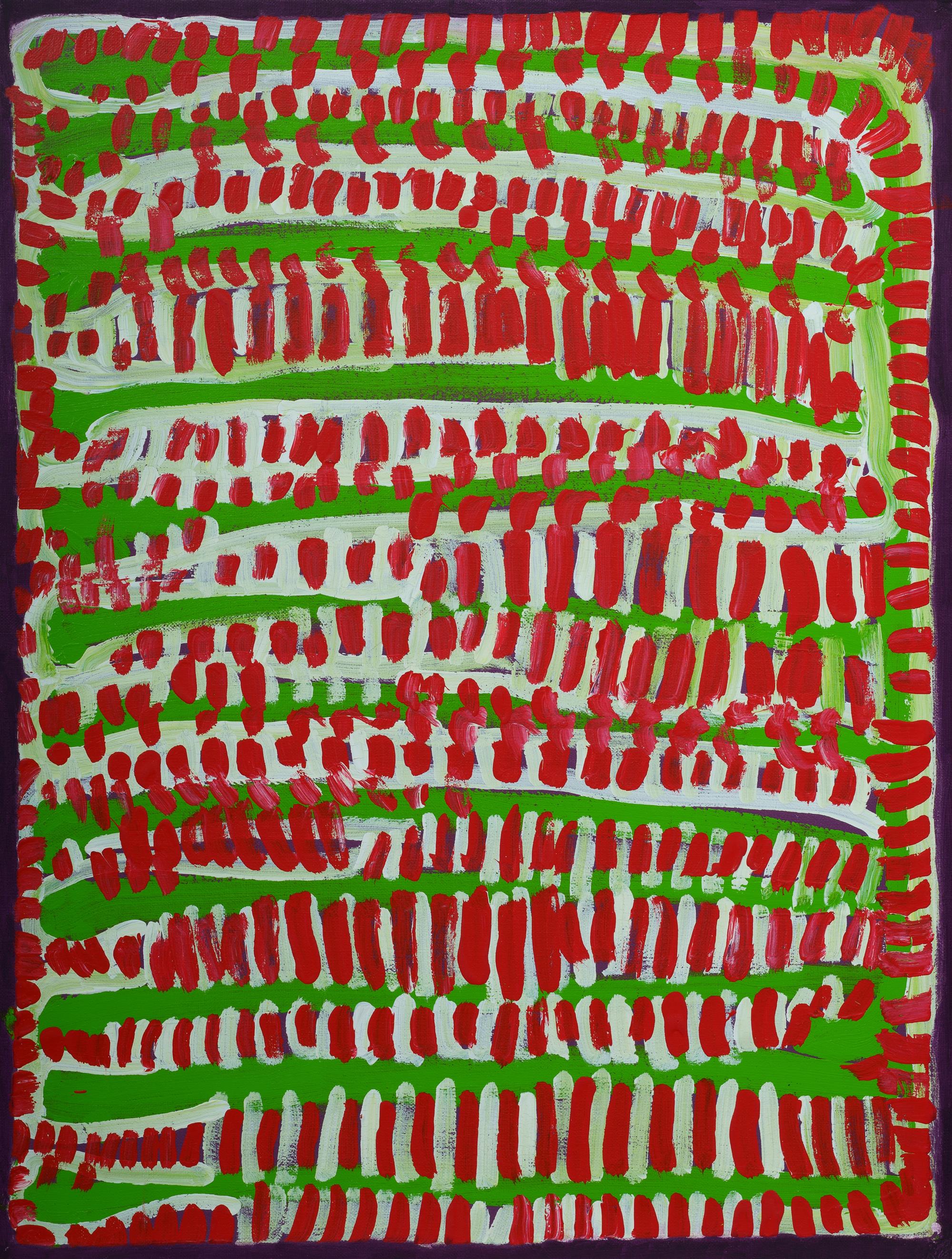 NAPARRULA, Lorna Fencer (Aboriginal 1923-2006) 'Water Dreaming, Lajamanu, NT' Cat #LF054, and Cooee #7028. Acrylic on Canvas 81.5x62cmEstimate $500-800