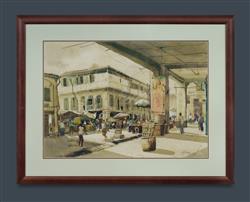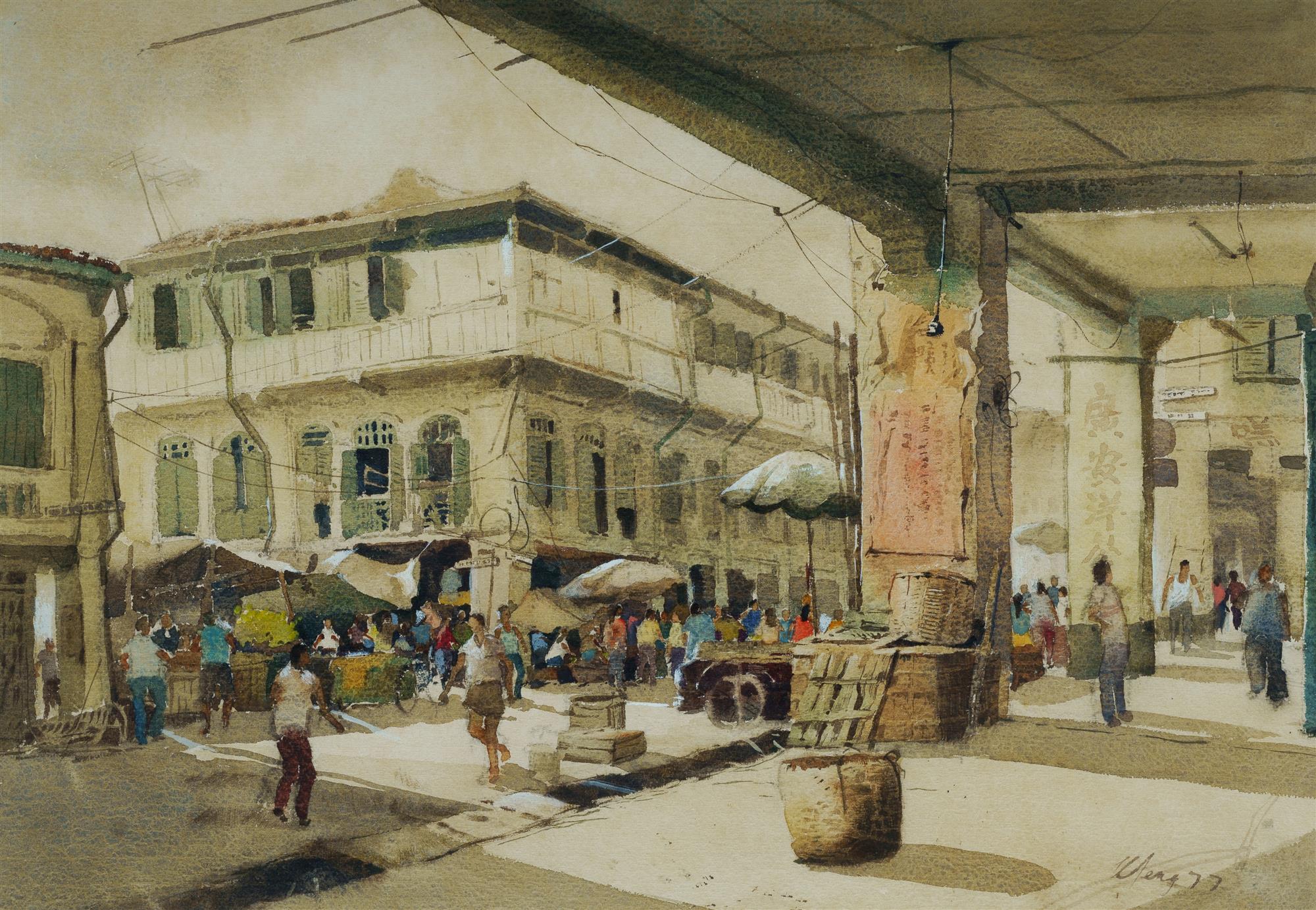 ONG, Kim Seng (Singapore b.1945) 'Chinatown in Old Singapore,' 1977. W/Clr 50x71cm PROVENANCE: The artist; collection of David and Jennifer Rumsey, NSW/QLD (purchased from the artist c.1978)Estimate $3,000-5,000