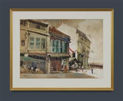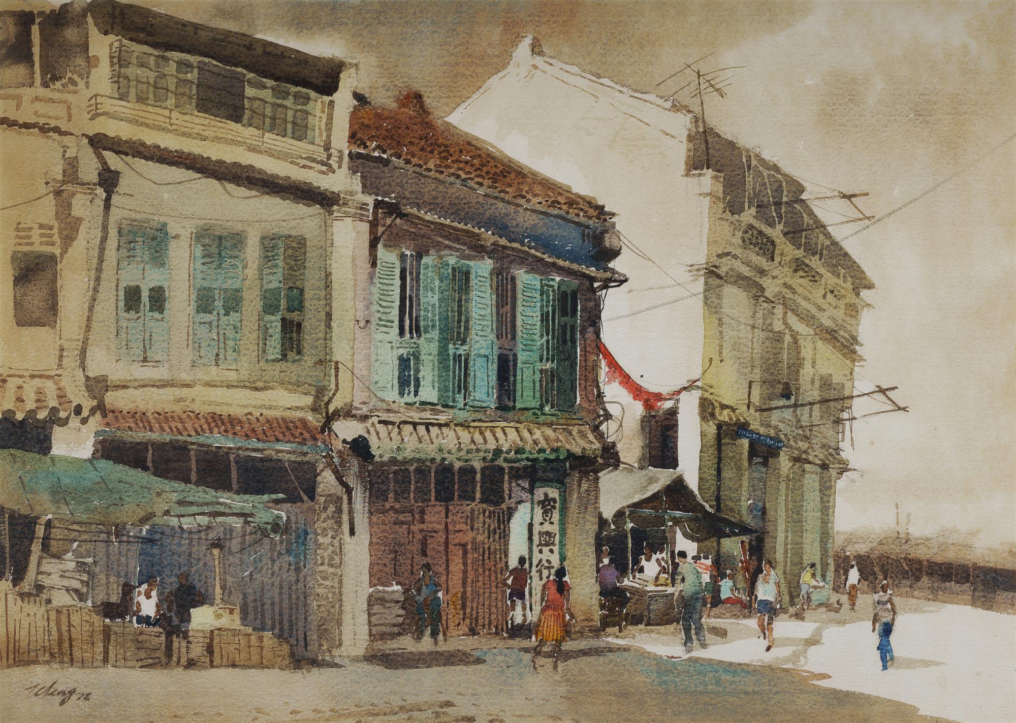 ONG, Kim Seng (Singapore b.1945) Old Singapore, 1978. W/Clr 51.5x72cm PROVENANCE: The artist; collection of David and Jennifer Rumsey, NSW/QLD (purchased from the artist c.1978)Estimate $3,000-5,000