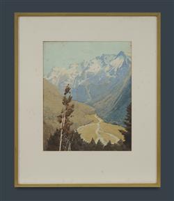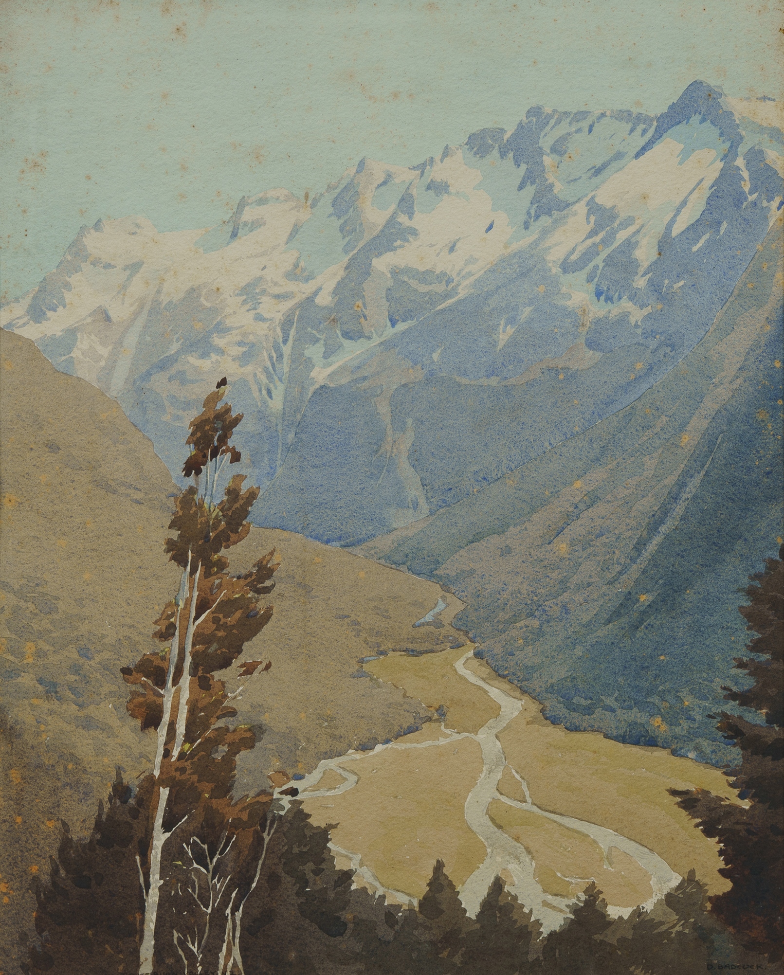 BADCOCK, Douglas (New Zealand 1922-2009) 'North Branch, Routeburn Valley, NZ' W/Clr 37x30cm