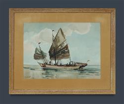 YONG MUN SEN, (Malaysia 1896-1962) Malaysian Junk, 1953. Signed and dated lower left. W/Clr 27.5x38cmEstimate $700-1,100