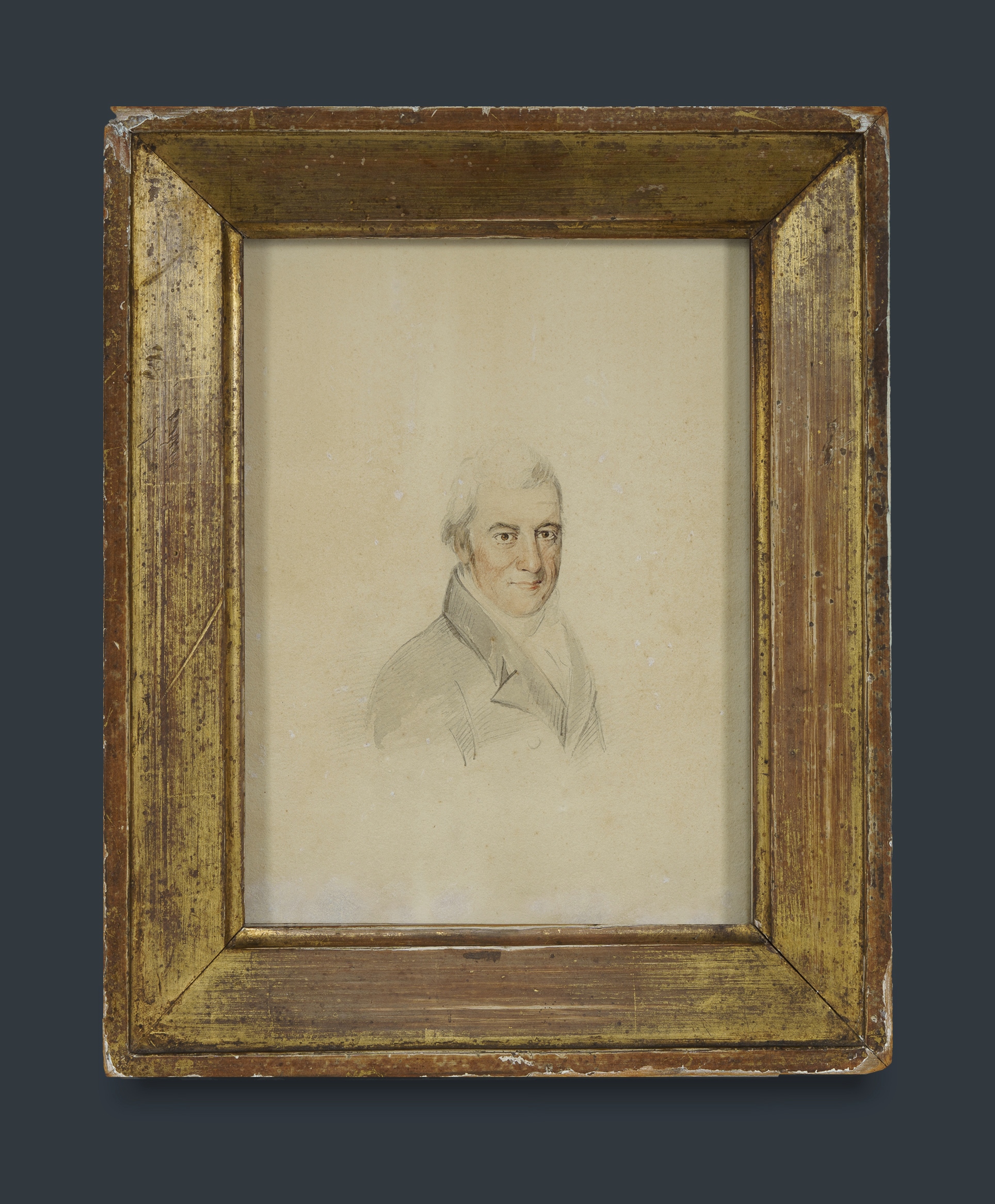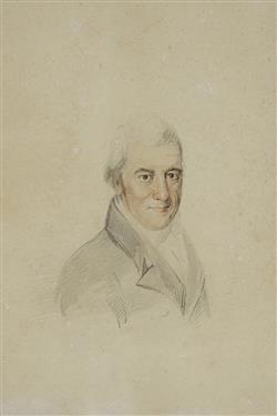 British School, 19th Century (?) Portrait of a Gentleman No signature apparent. Inscribed verso: John (?) / born November 11 1752 / died / December 14 1846 / Aged 94. W/Clr & Pencil 18.5x13.5cmEstimate $120-250