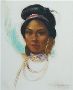 Philippine School (2) Ifugao (?) Portraits in Traditional Earrings and Necklaces, 1947. Coloured Crayon/Pastel (2) 58x47cmEstimate $120-250