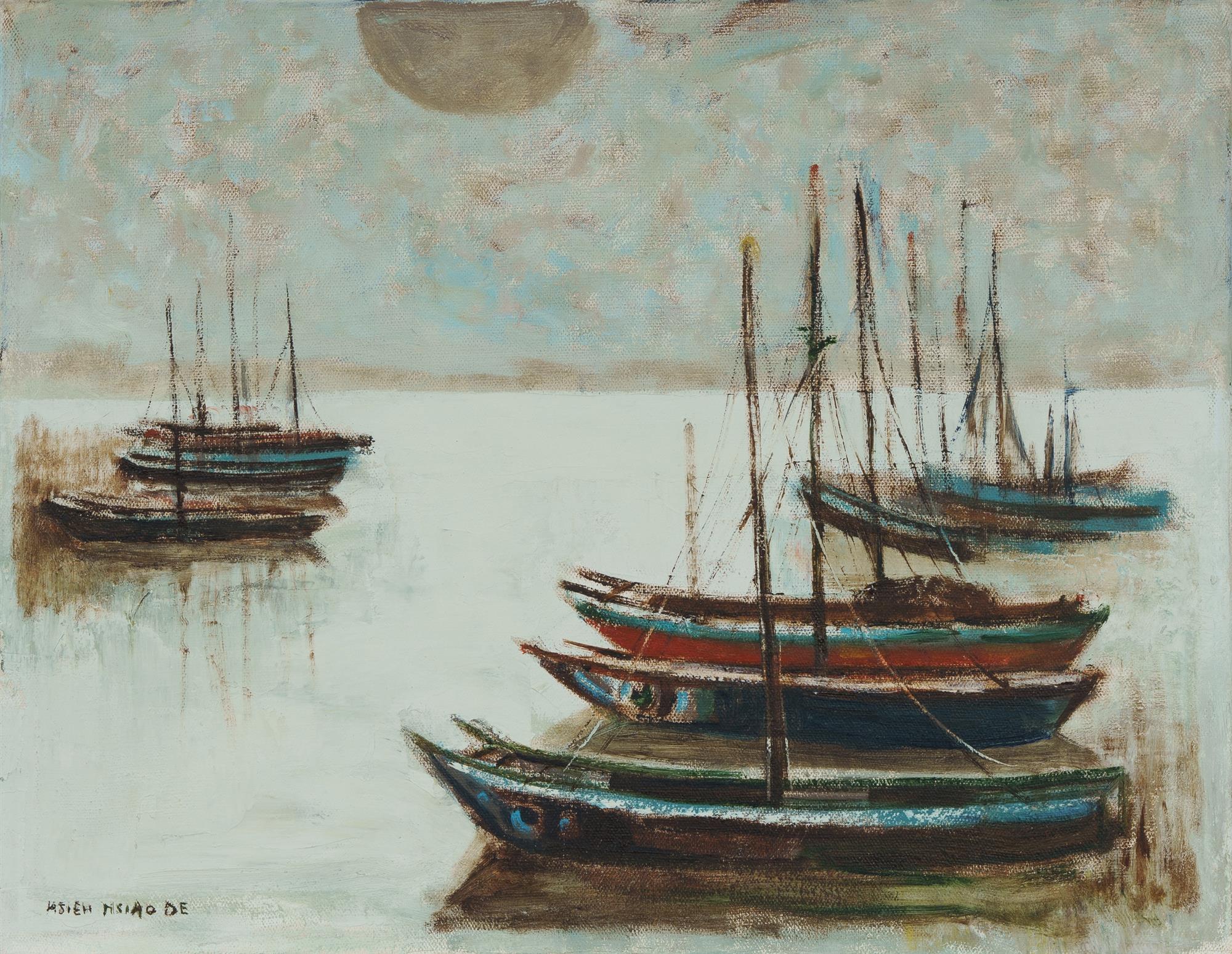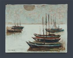 Attrib. HSIAO-DE HSIEH (Taiwanese b.1940) Moored Boats Signed lower left (unverified) Oil on Canvas 31.5x40.5cmEstimate $100-300