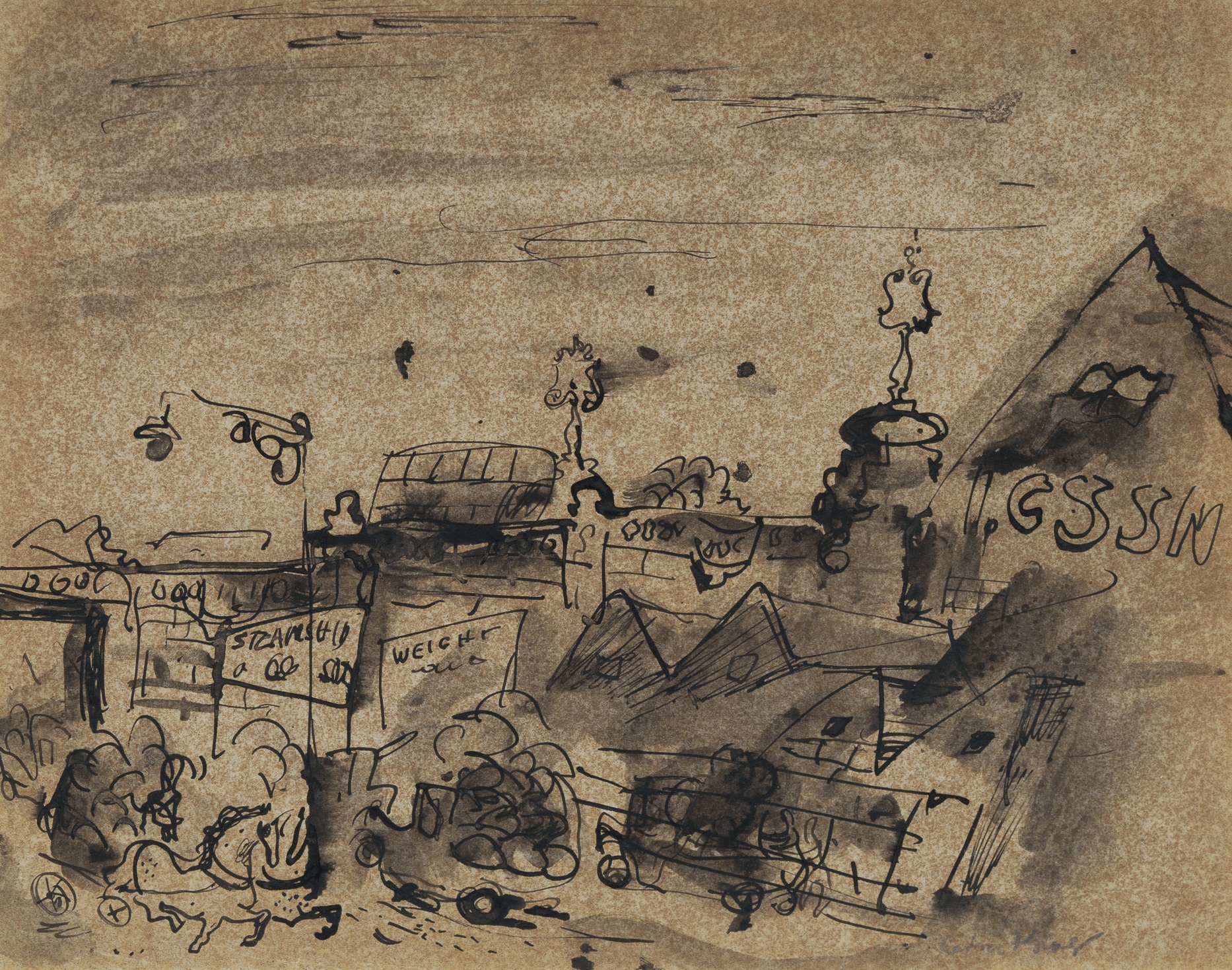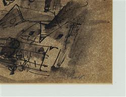 FLOWER, Cedric (1920-2000) 'Sussex Street' Signed indistinctly lower right; old gallery label verso. Pen & Ink 19x24cm PROVENANCE: The Fred and Elinor Wrobel Collection, Sydney; Estate Late Elinor Wrobel.Estimate $100-200
