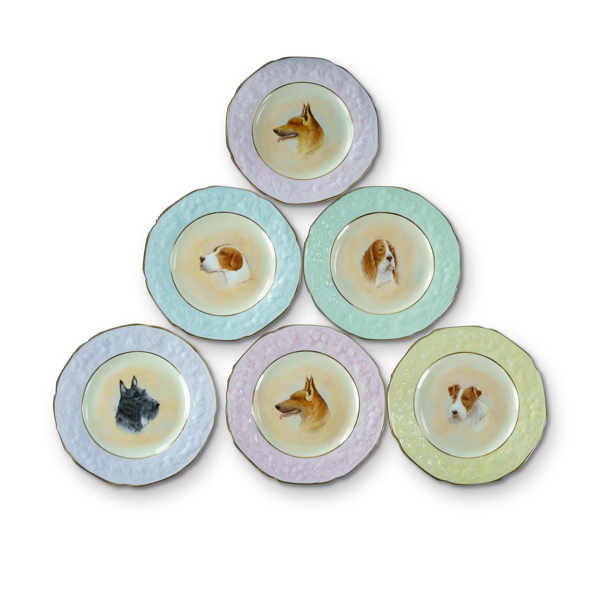Set of 6 Paragon China Small Hand Painted Cabinet Plates Each with hand painted dog, by Reginald Johnson, art director at Paragon China. (Dia.15.5cm)Estimate $60-100