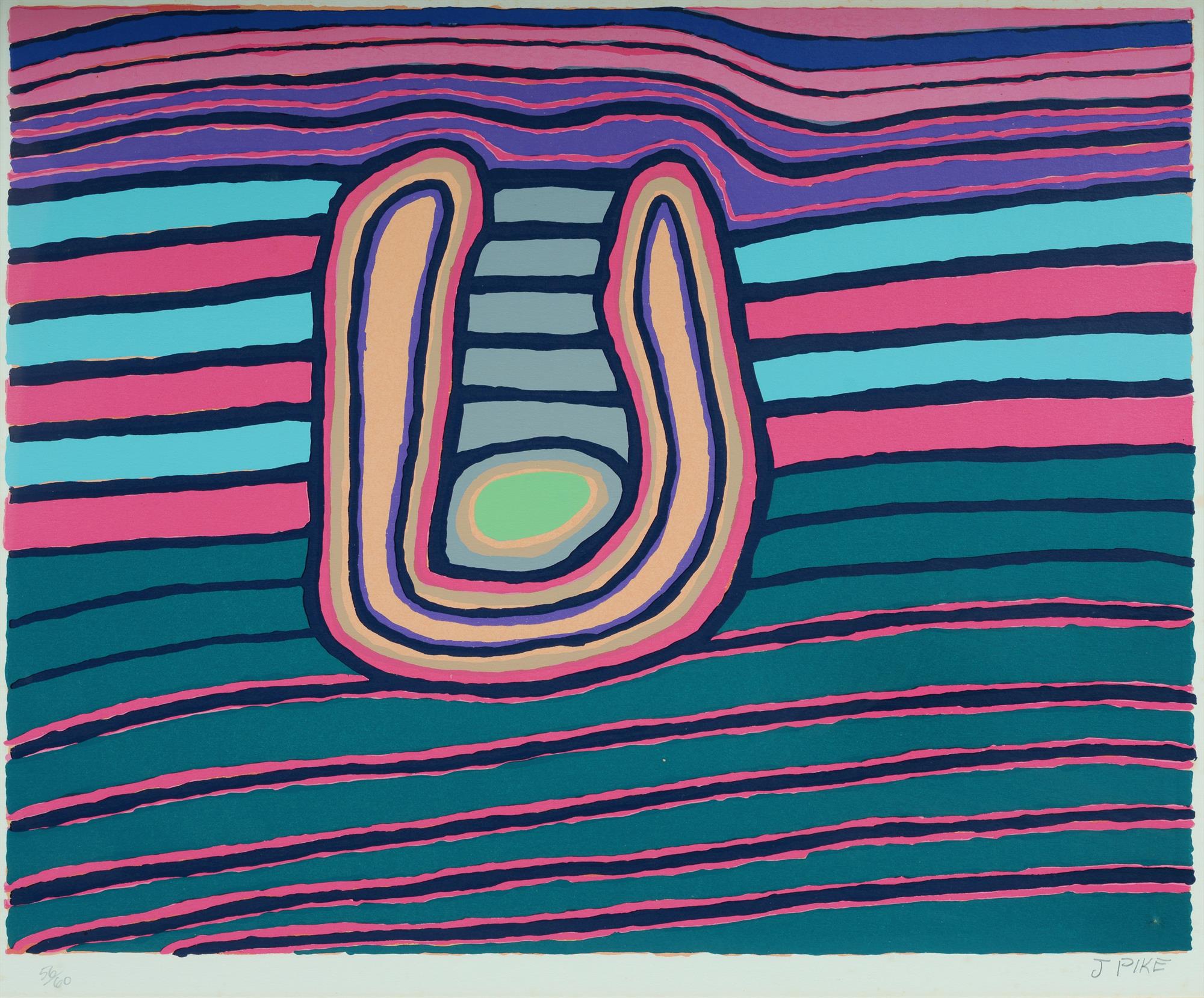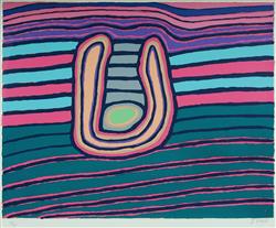 PIKE, Jimmy Kurtnu (Aboriginal 1940-2002) 'Two Men at a Waterhole,' 1986. S/Print 56/60 40.5x51cm (image)