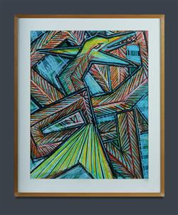 SAMUELS, Jeffrey (Aboriginal b.1956) 'Rainbow Serpent Before Entering the Waterhole,' 1986. Signed, titled and dated. Crayon on Cotton Paper 69x55cm (sight) PROVENANCE: Private collection, Sydney.Estimate $150-300