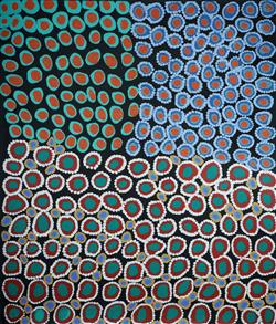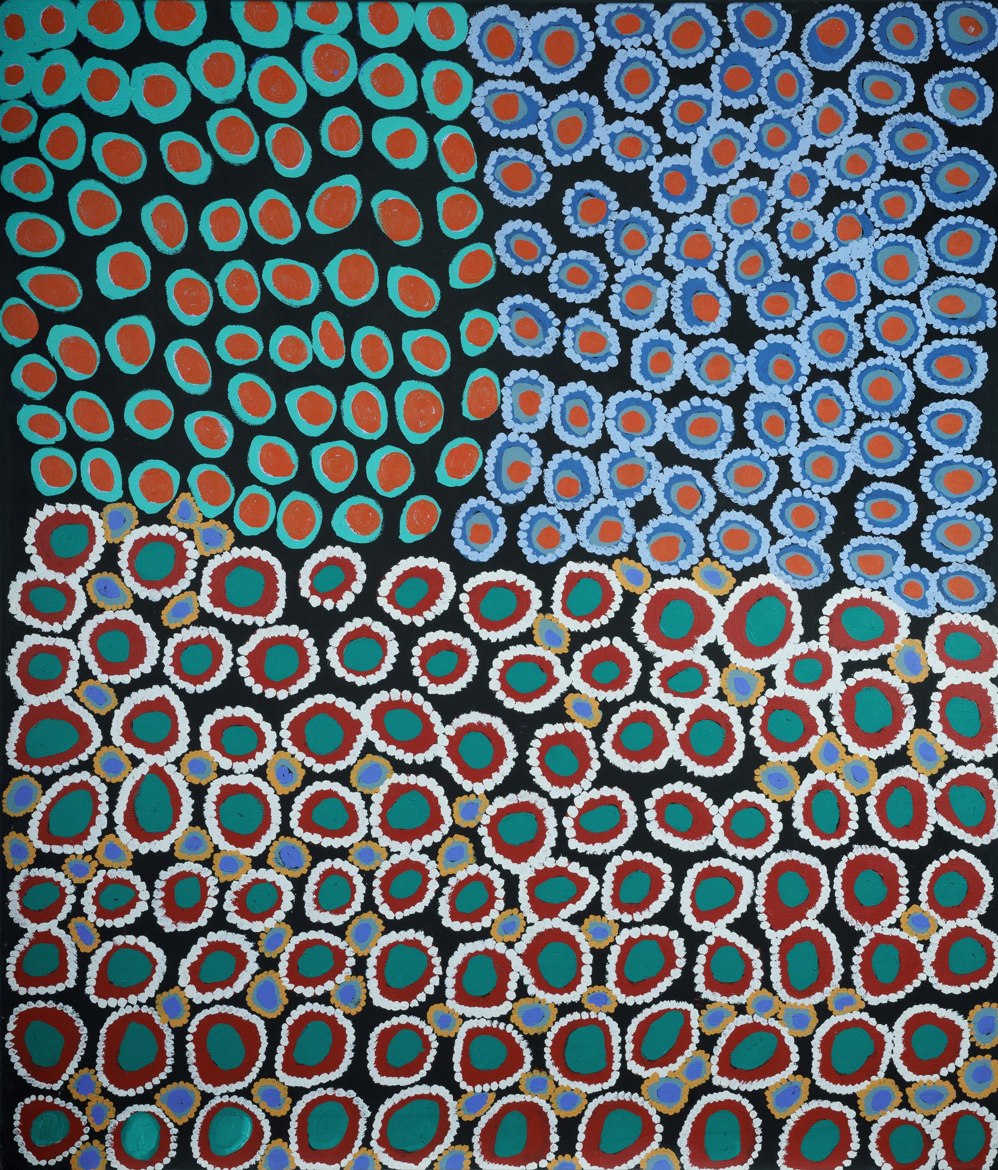MOKO, Donald (Aboriginal c.1928-2022) 'Nyila (Bidyadanga)' 2005. Acrylic on Canvas 146x122cm PROVENANCE: Short St Gallery, Broome, WA, cat #3504 (copy of certificate of authenticity available); private collection, Sydney.Estimate $1,000-1,500