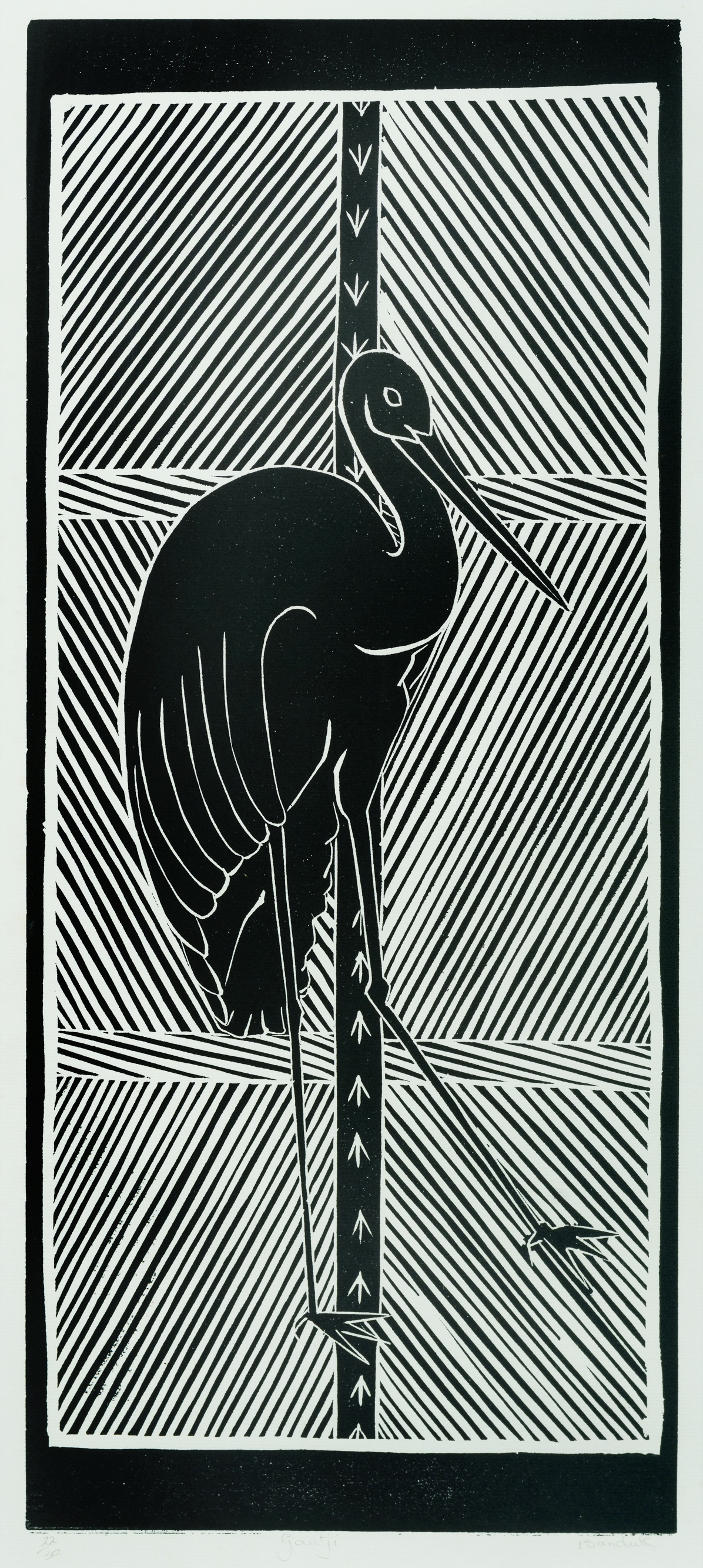 MARIKA, Banduk (Aboriginal 1954-2021) 'Gantji' Linocut 22/30 45x19.5cm PROVENANCE: Private collection, Sydney.Estimate $150-250