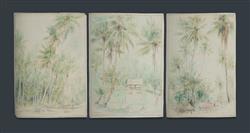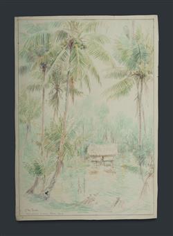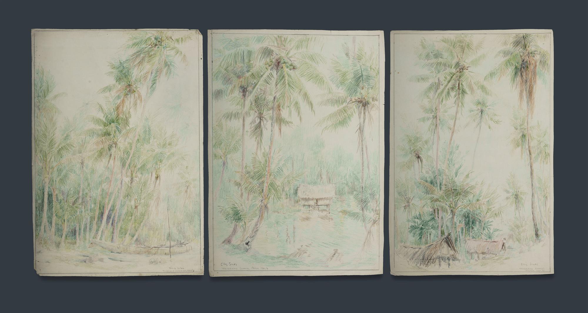 SILAS, Ellis (British/Australian 1883-1972) (3) 'Trobriand Islands, Papua,' 1921. Colour Pencil (3) 53x36cm (sheet, approx) PROVENANCE: Family of the Artist.Estimate $450-750
