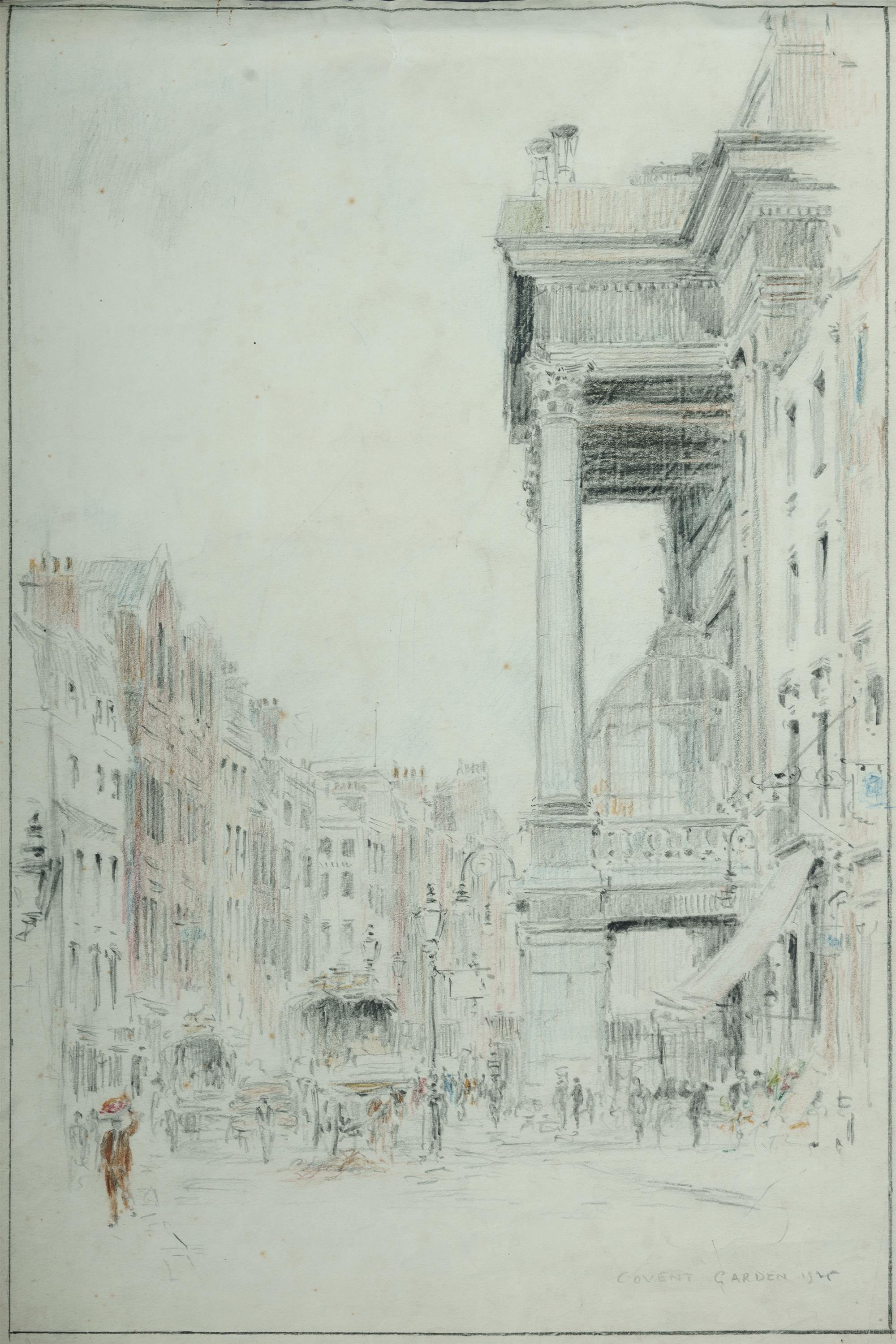 SILAS, Ellis (British/Australian 1883-1972) 'Covent Garden,' 1925. Unsigned Pencil & Crayon 48x32.5cm (sheet) PROVENANCE: Family of the Artist.Estimate $150-250
