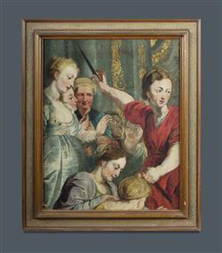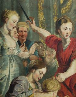 After Rubens (European School) Copy of 'Achilles Discovered by Ulysses and Diomedes' Accompanied by various letters and documents related to the painting's provenance. Oil on Canvas 62x50cm