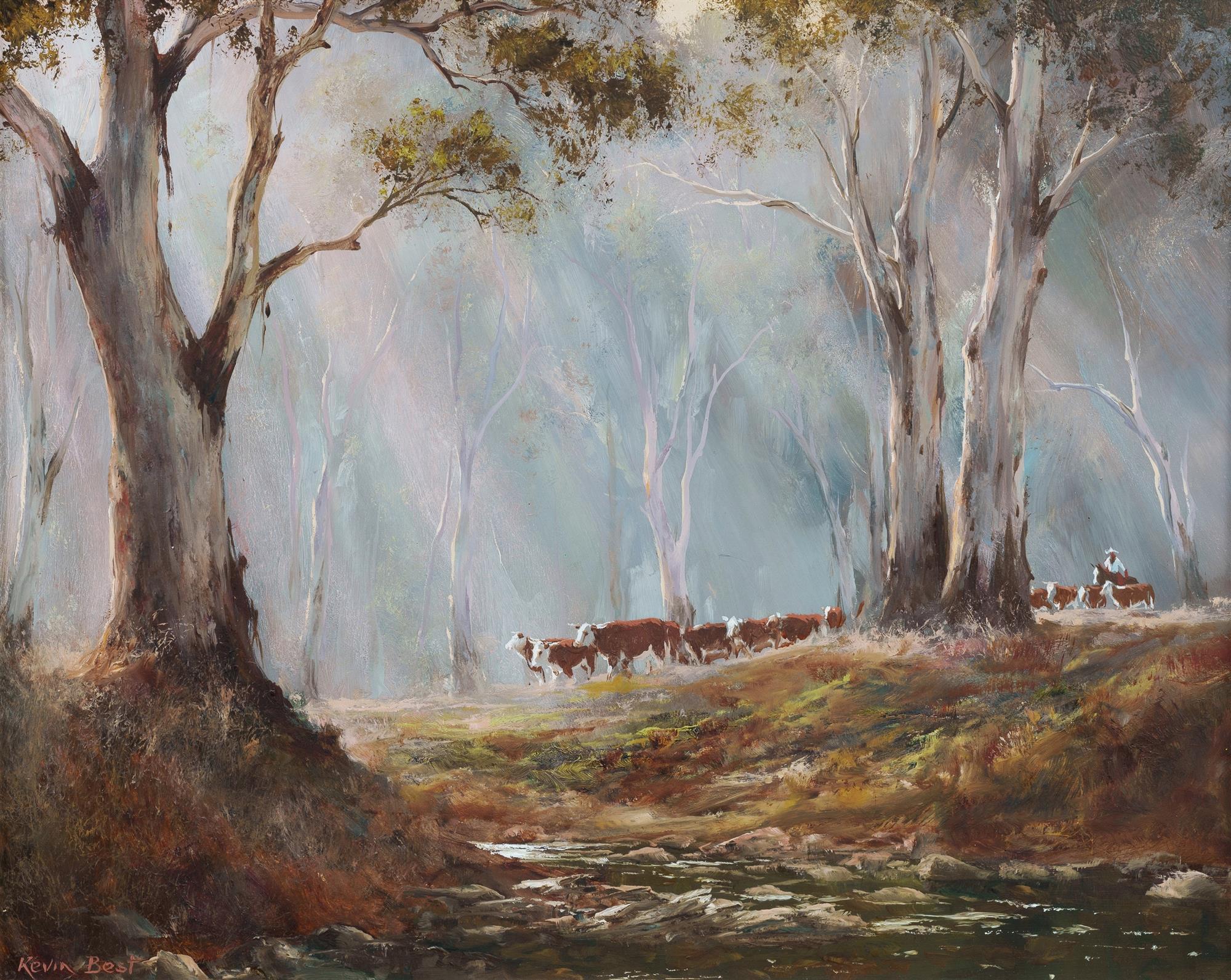 BEST, Kevin (1932-2012) 'Coming up to the Crossing' Signed lower left. Oil on Board 39.5x49.5cmEstimate $800-1,500