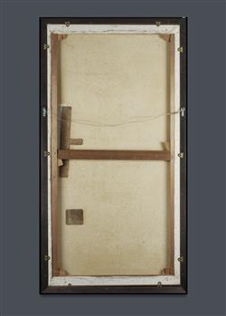 Condition: Evidence of prior conservation work. Two large patch repairs verso (right-hand side of image). Craquelure and some surface irregularities visible upon close inspection and under raking light.