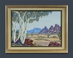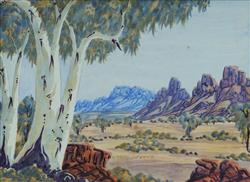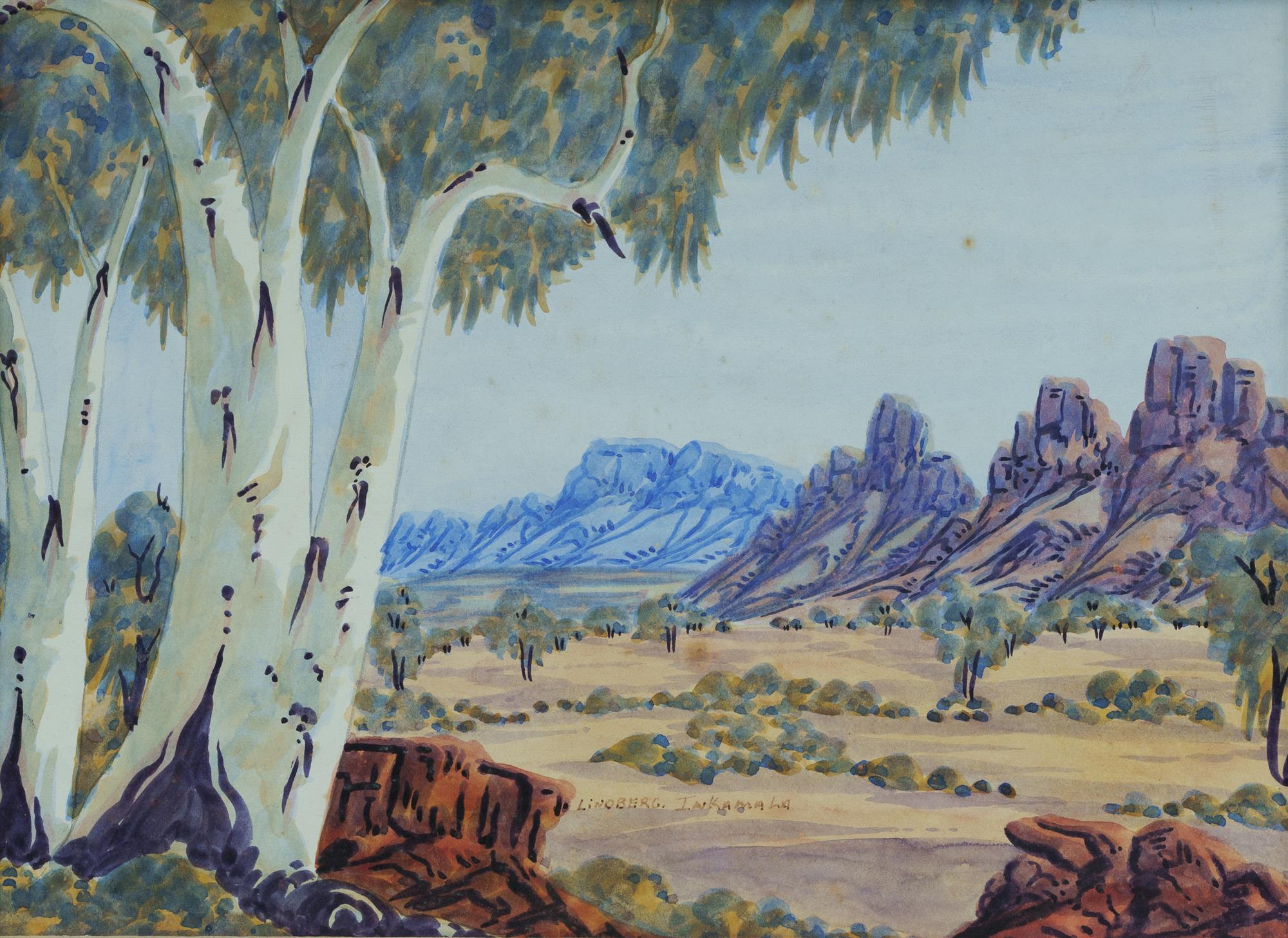 INKAMALA, Lindberg (1942-1980) Ghost Gums and Mountain Range Ex Battarbee Tmara-Mara Galleries, Alice Springs (noted on verso) W/Clr 26x36cmEstimate $180-300