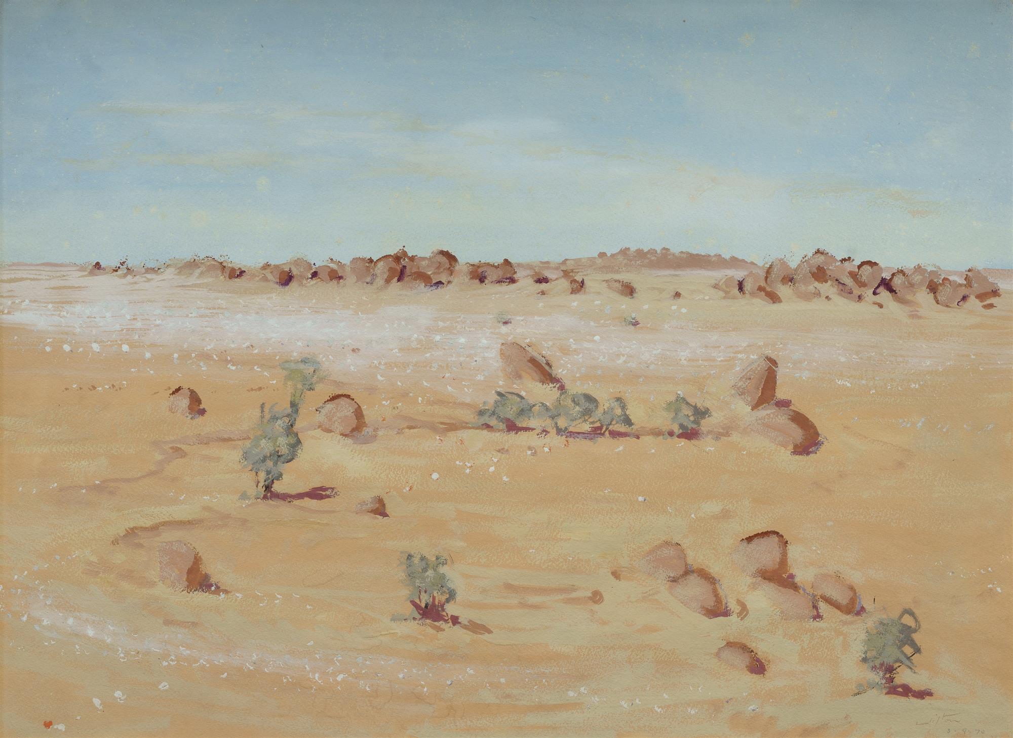 PUGH, Clifton Ernest (1924-1990) Desert Landscape, 1970. Signed lower right. Gouache 55x75cmEstimate $400-600
