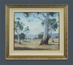 LONG, Leonard (1911-2013) 'Pheasant Gully - Sheep Country,' 1959. Signed lower left.; old label verso. Oil on Canvas on Board 49x59cmEstimate $600-900