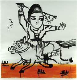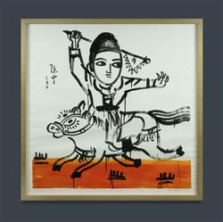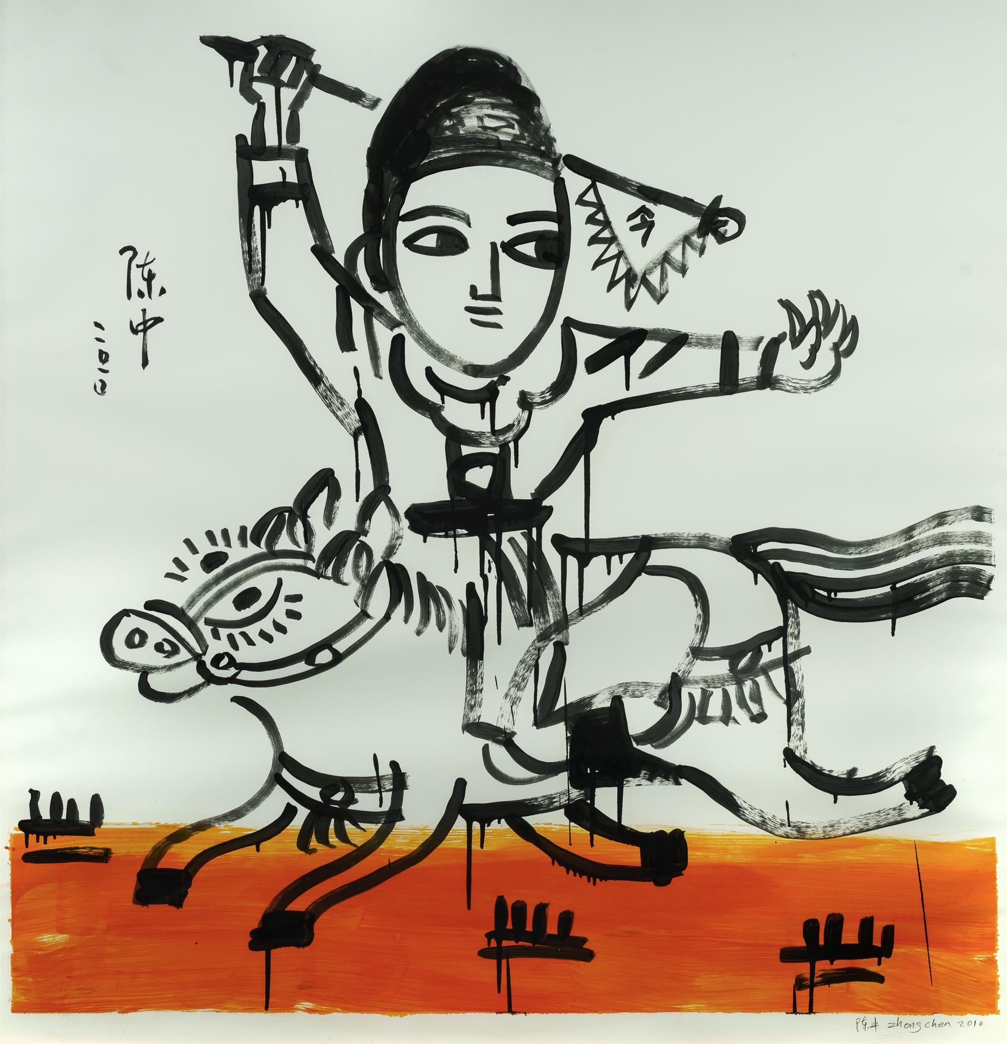 CHEN, Zhong (b.1969) Kung Fu Boy on Horse, 2010. Ink & Acrylic on Paper 109x109cmEstimate $1,000-2,000