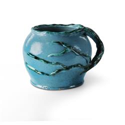 Marianne Emily ALBISTON Australian Pottery Vase with Applied Tree Branch Handle Inscribed 'M. Albiston' to base. (H17cm Dia.20cm)Estimate $300-600