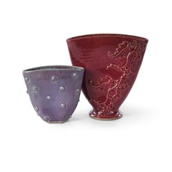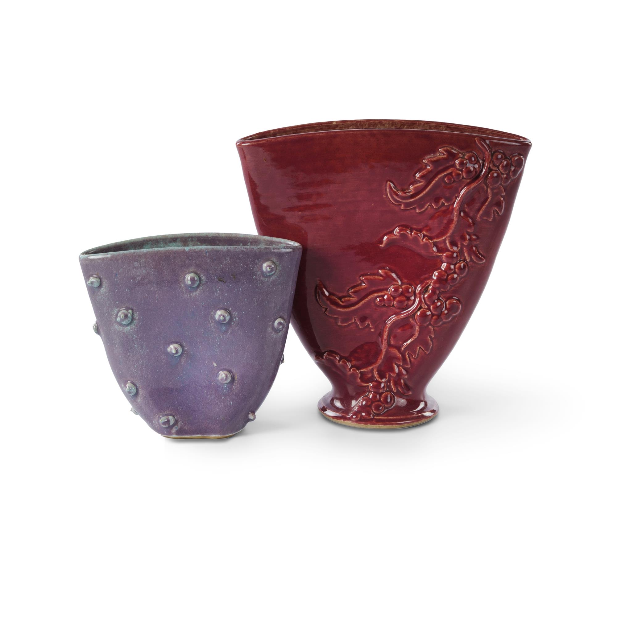 KNIGHT (Janet Gray), John (1910-1995) 2 Vases in Purple and Red Glaze Each incised with his pseudonym 'Janet Gray'. H19cm (each)Estimate $100-200