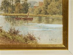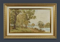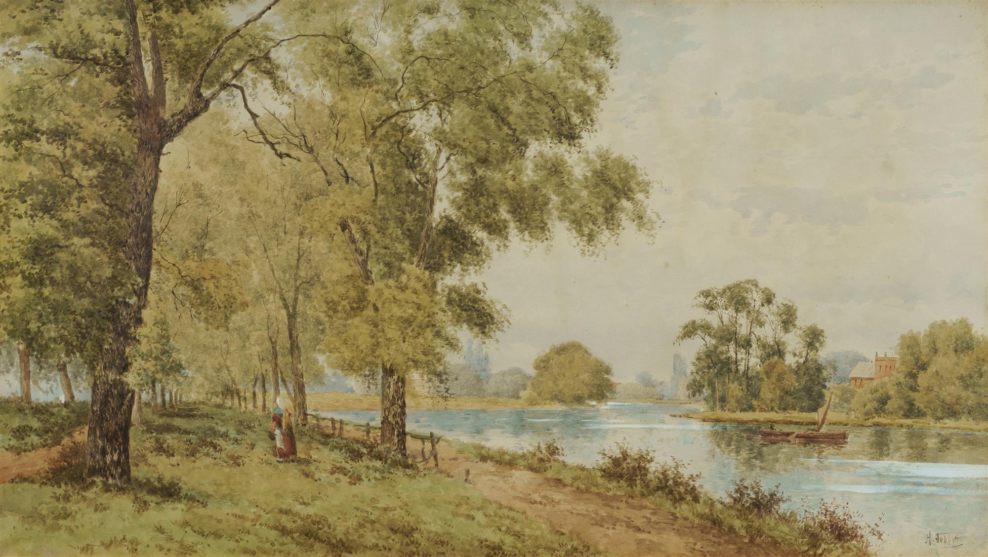 TEBBITT, Henri (1852-1926) Footpath Beside a River with View to Distant Church Signed lower right. W/Clr 44.5x78cmEstimate $300-500