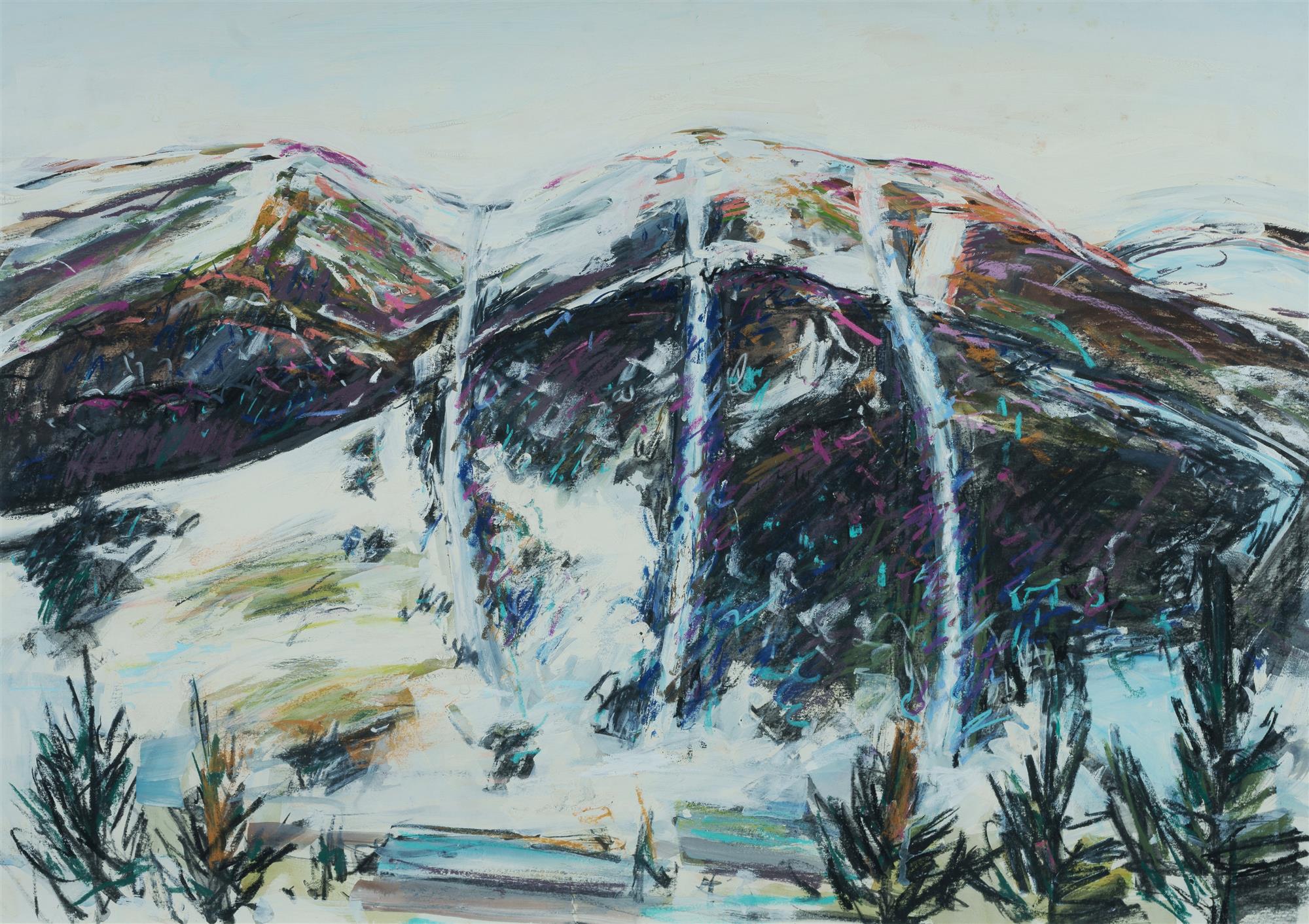 DUGUID, Elizabeth (b.1941) 'Crackenback Sunset [NSW]' Signed (?) and titled verso. Acrylic & Pastel on Paper 58x82cmEstimate $300-500