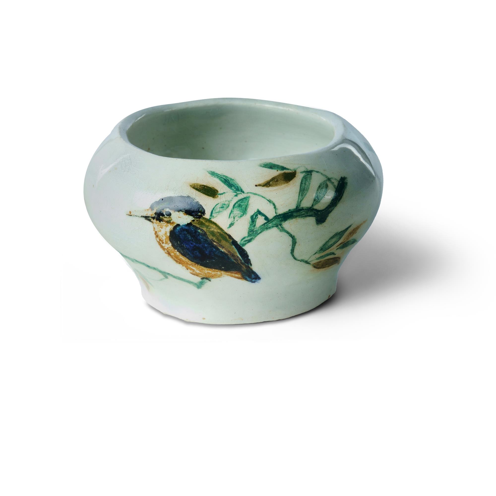 MacDONALD, Mary Ann (1868-1955) Small Hand Built Bowl, Painted with Kookaburra on Branch Incised monogram to base. (H5.5cm Dia.10cm)Estimate $50-100