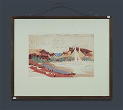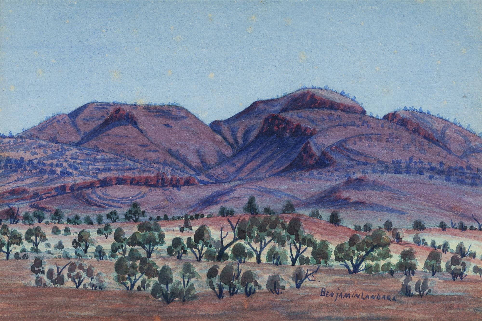 LANDARA, Benjamin (1921-1985) Central Australian Landscape Signed lower centre. Unfinished image verso with additional notes and stamps. W/Clr 24x36cm