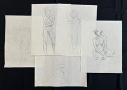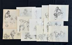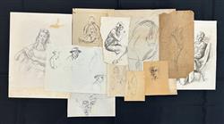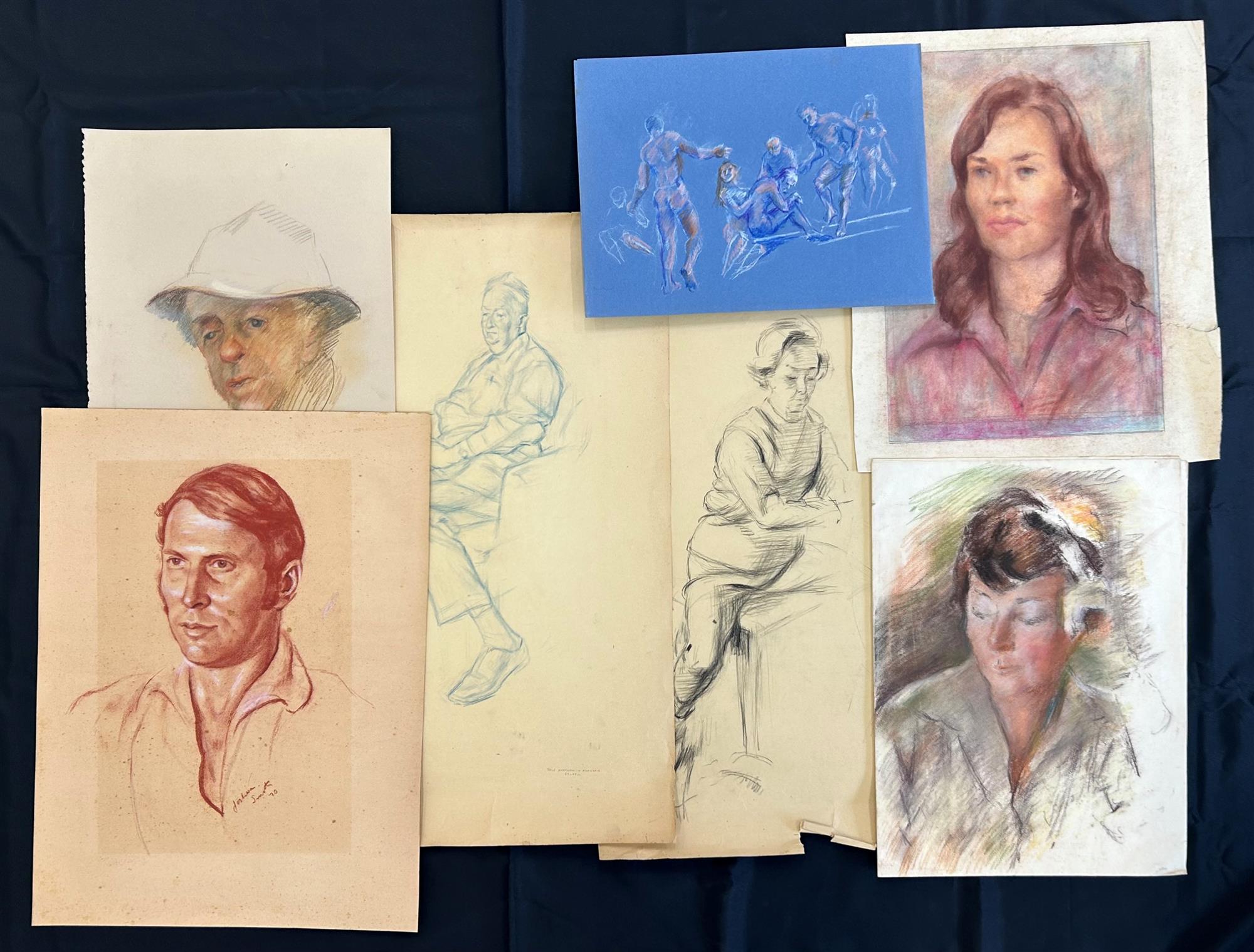 SMITH Joshua (1905-1995) & CLOSE Yve (1930-2023) Group of Miscellaneous Sketches (approx 36) from the Studio of Joshua Smith Pastel, Pencil, Pen & Ink 78x51cm (largest) PROVENANCE: Estate Late Yvonne O'Hara-Close (artist Yve Close)Estimate $300-600