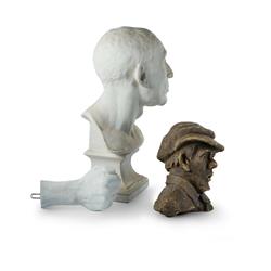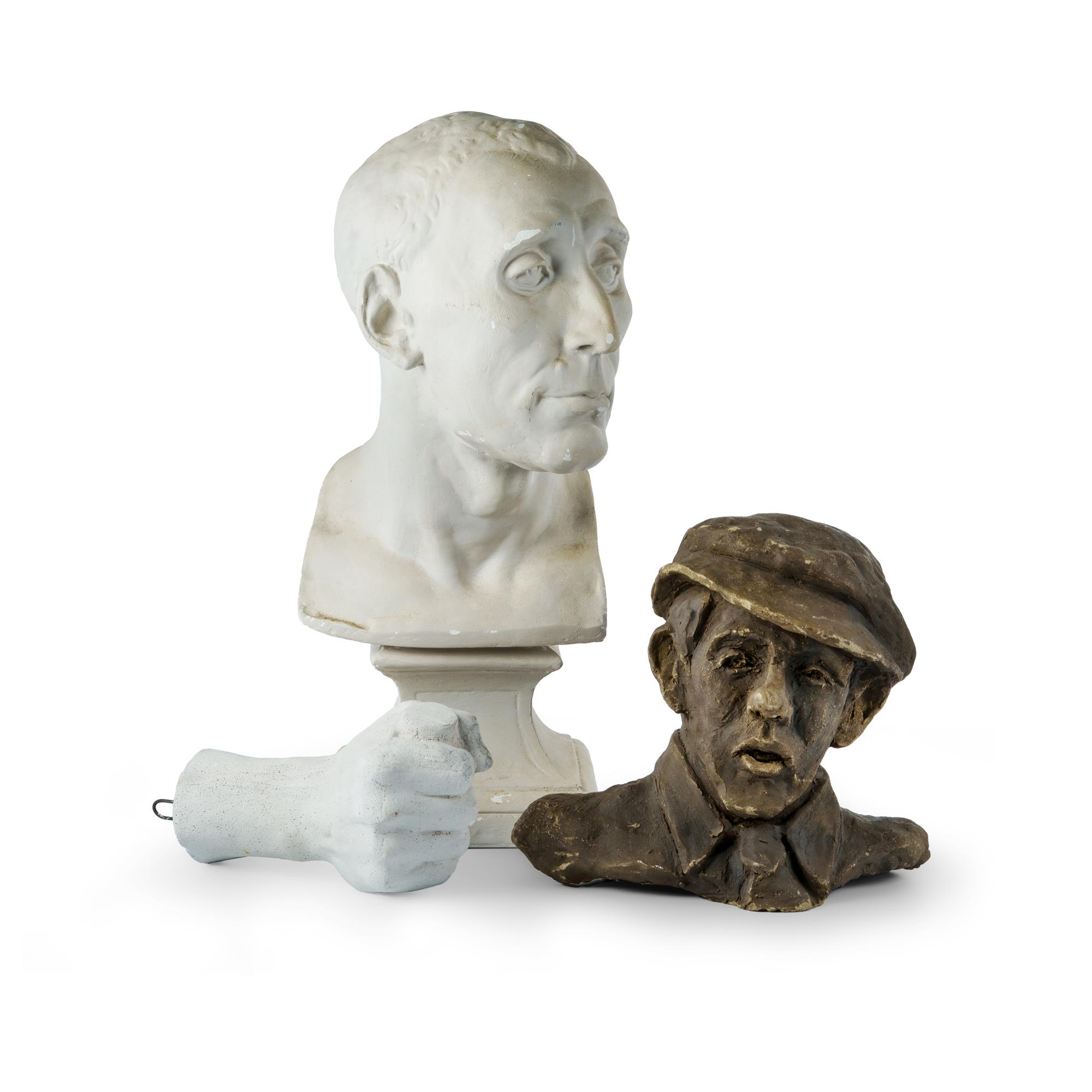 3 Studio Sculptures from the Studio of Joshua Smith Including Man in Cap, clay (H22cm); Clasped Hand, plaster (H20cm); and a replica bust of Niccolò da Uzzano, plaster (H46cm) PROVENANCE: Estate Late Yvonne O'Hara-Close (artist Yve Close)Estimate $120-250