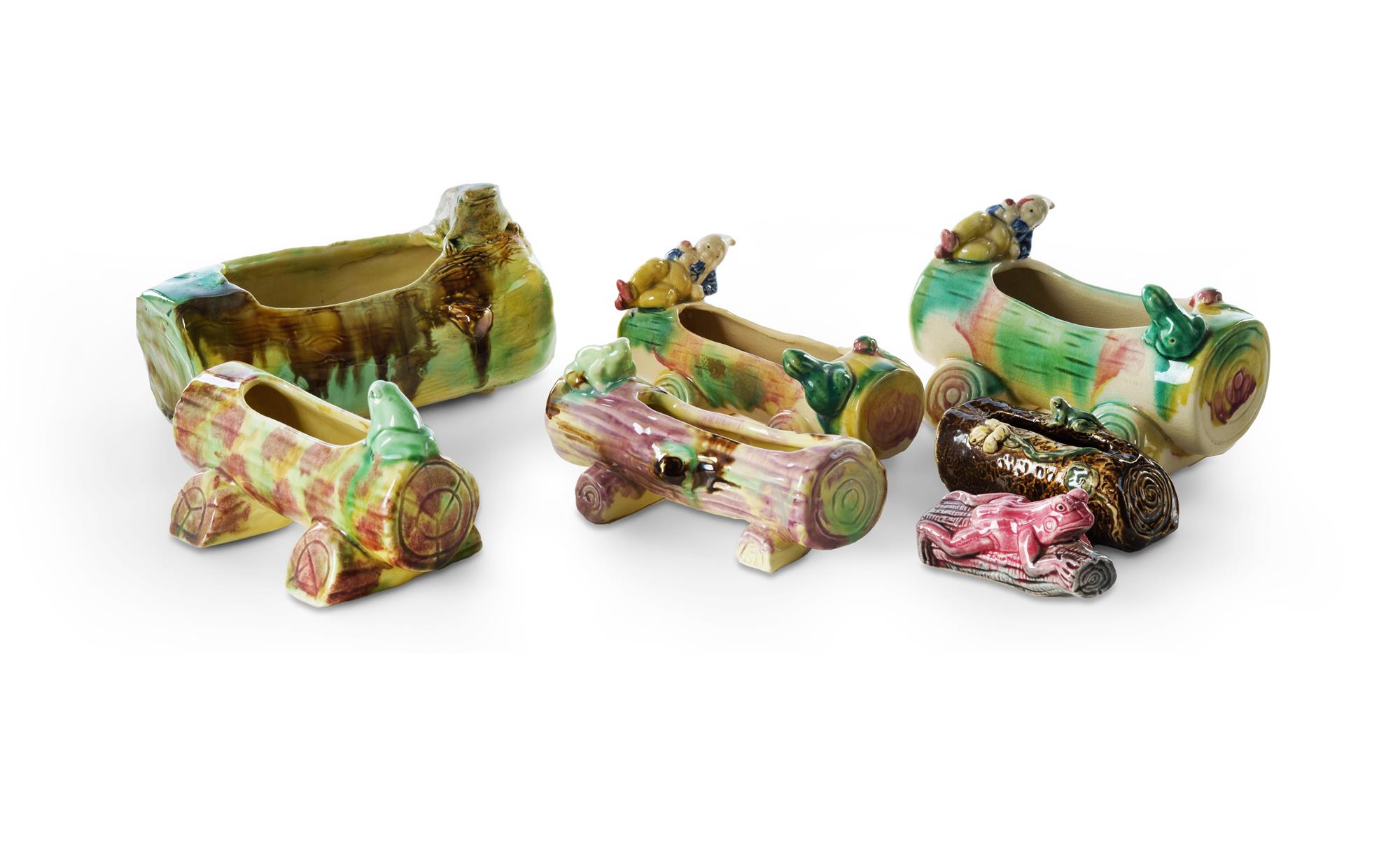 7 Various Australian Pottery Items Hand built, and moulded trough vases, with applied frogs and gnomes. L18cm (longest)Estimate $150-250