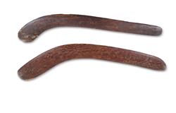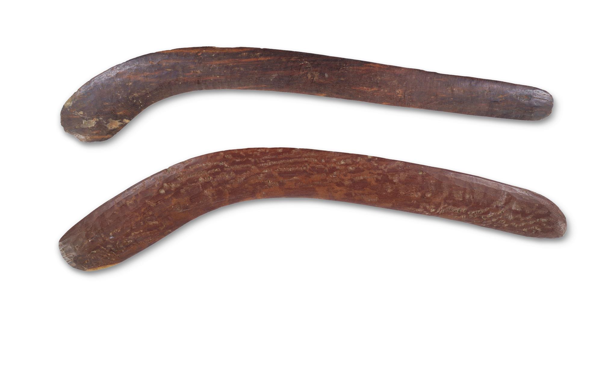 Two Australian Mulga Wood Hunting Boomerangs (L61cm, & 64cm) PROVENANCE: Collection Mr H & Mrs P Wallace, Sydney.Estimate $200-400