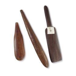 Three Various Wadeye (Port Keats) Ironwood Clubs One with pecked decoration. Ex Sotheby's Australia, 9/11/97 (lot 73) (L53cm) PROVENANCE: Collection Mr H & Mrs P Wallace, Sydney.Estimate $200-400