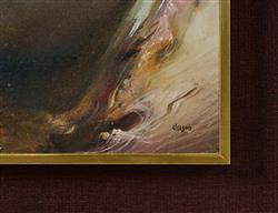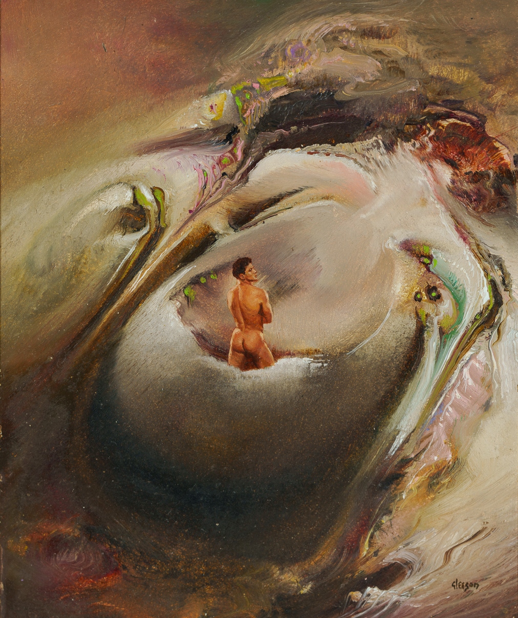 GLEESON, James (1915-2008) Figure in Psychoscape Signed lower right. Oil on Board 15x12.5cm PROVENANCE: Leonard Joel, Melbourne, 22nd March 2022, lot 114 (sold as 'Figure in Psychoscape I')Estimate $2,250-3,000