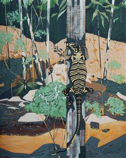 PICK, Russell (b.1947) 'Lace Goanna,' 1981. Signed lower right. Oil on Board 75x60cmEstimate $200-400